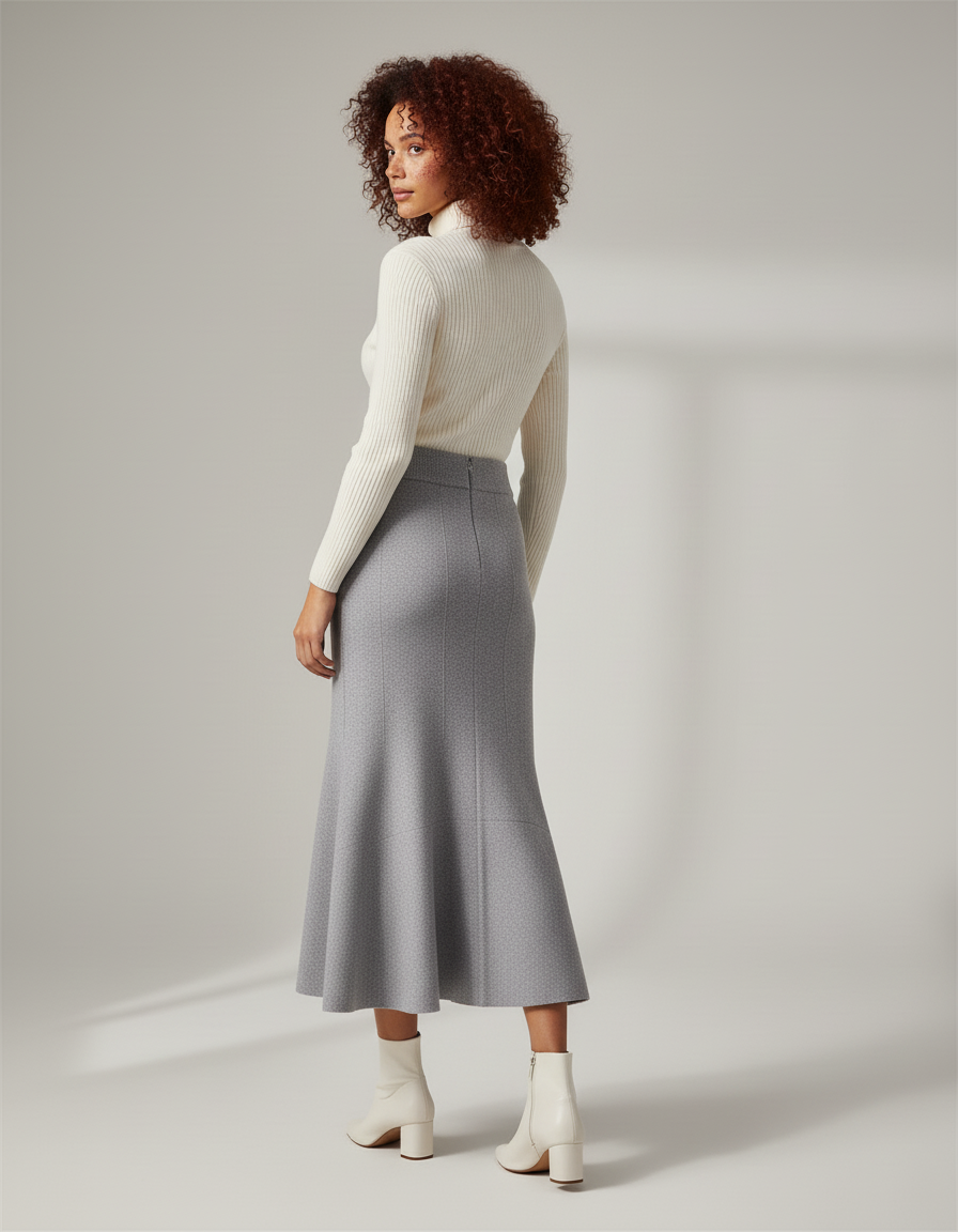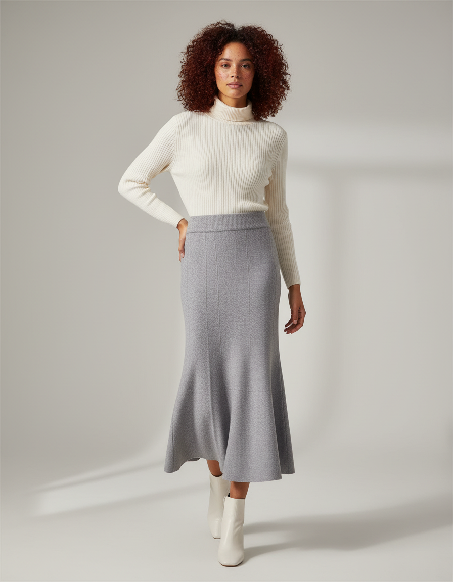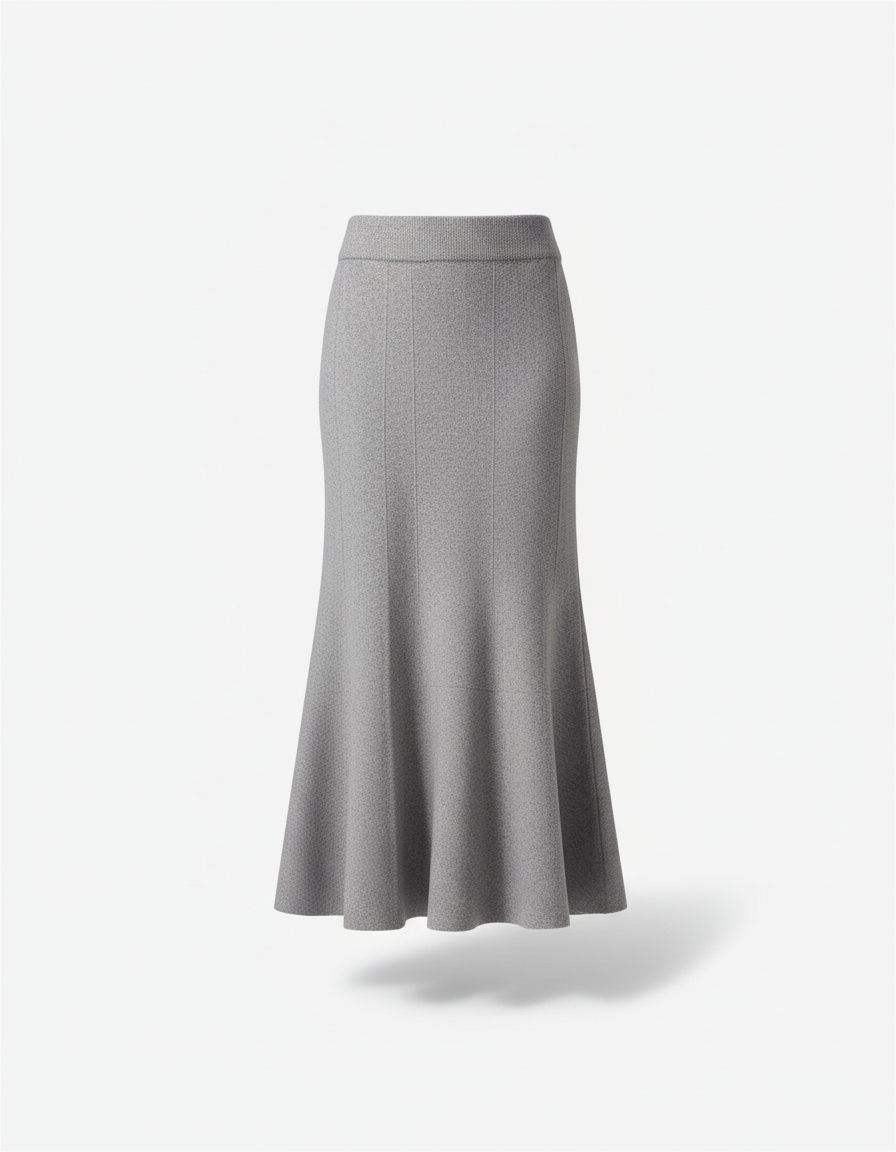 Jupe À Godets Mi-Longue : L'Élégance Sculptée en Maille