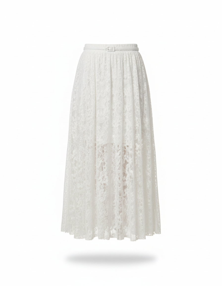 Jupe Blanc Longue en Dentelle Transparente