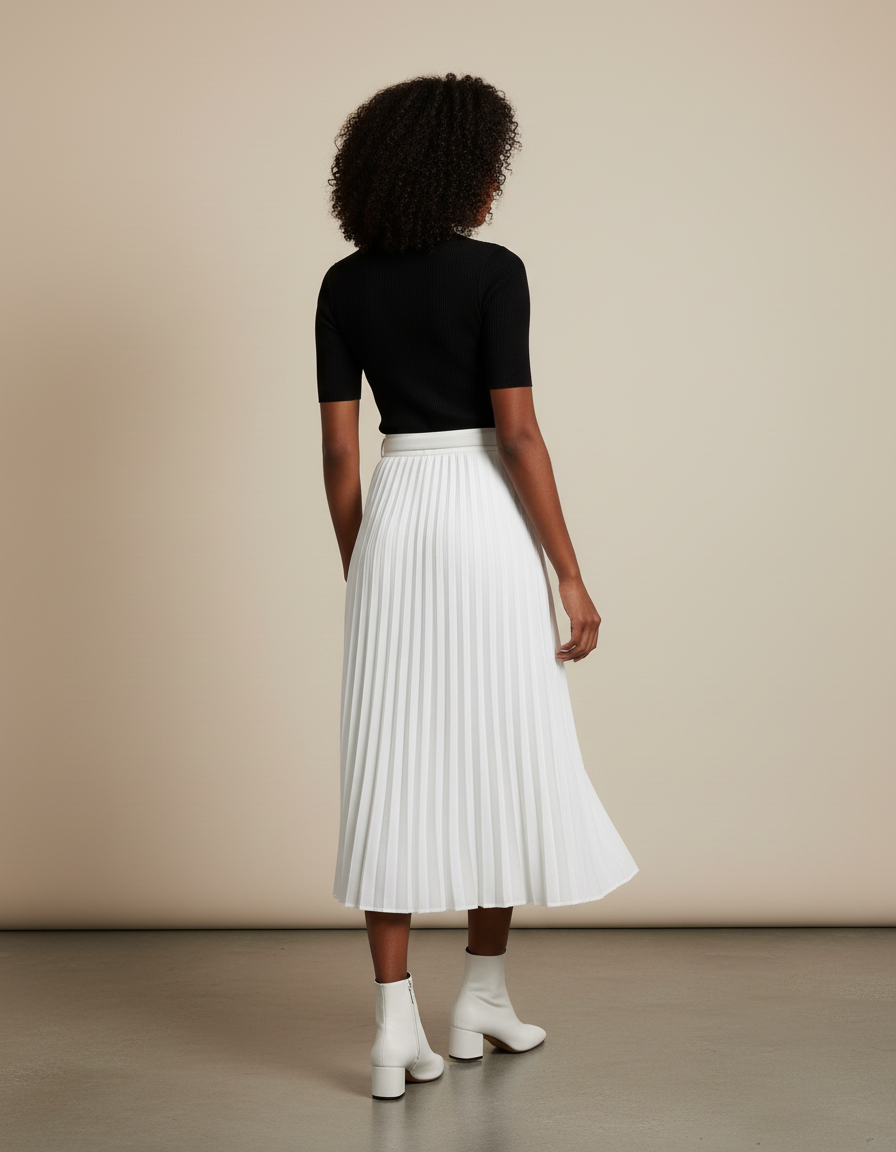- Jupe midi plissée et fluide.
