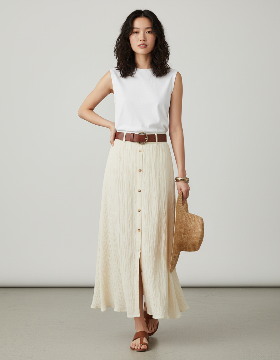 La Jupe Boutonnée Mi-Longue : L'Élégance Sans Effort pour l'Été