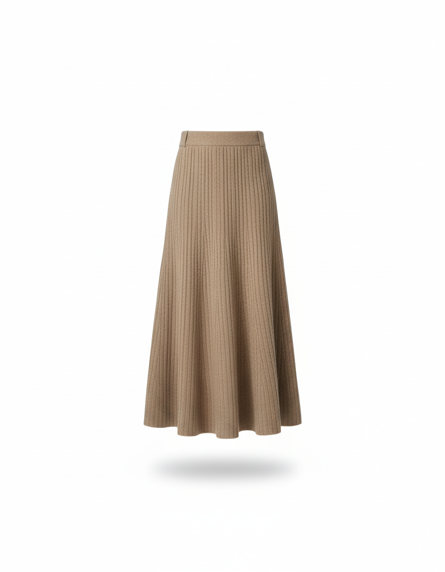 Adoptez l'élégance décontractée avec notre jupe longue en maille côtelée, parfaite pour un confort stylé.