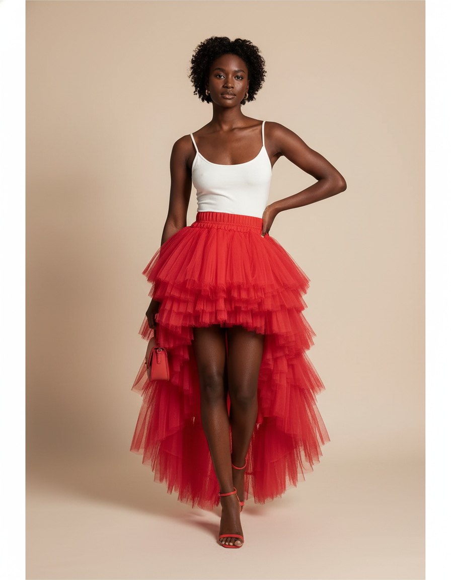 Jupe Asymétrique en Tulle Rouge : L'Éclat Spectaculaire