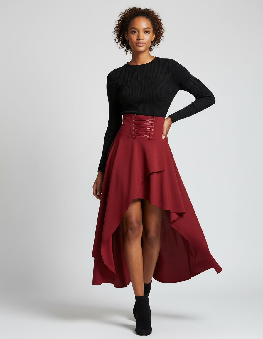 Affirmez Votre Audace : La Jupe Asymétrique Bordeaux, Icône Bohème