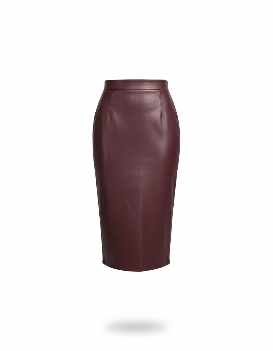 La Jupe Crayon Longue Cuir Bordeaux : L'Élégance Hivernale Sans Compromis