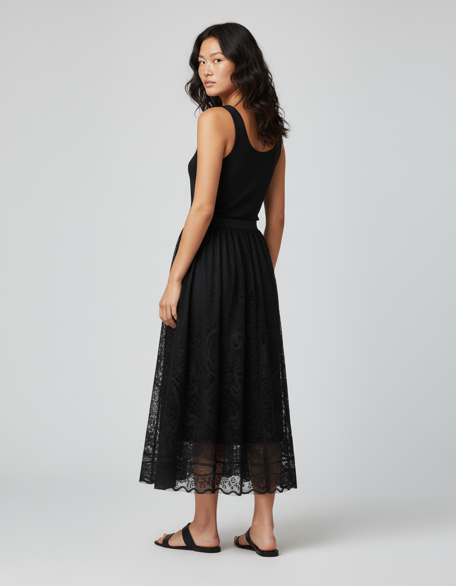 La Jupe Dentelle Noire Longue : L'Art de l'Élégance Fluide