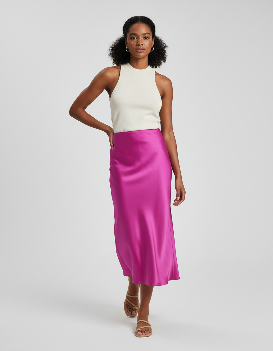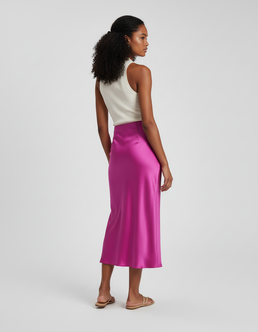 Jupe Fluide Satin Rose : L'Élégance Vibrante