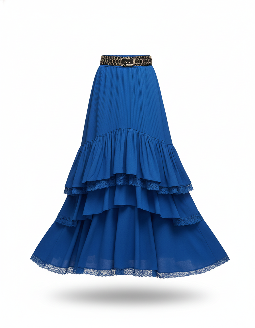Plongez dans le confort absolu et la liberté de mouvement avec notre Jupe En Forme Longue. Confectionnée dans une matière fluide et légère d'un bleu profond, elle assure un tombé impeccable qui sublime votre silhouette à chaque pas. Ses volants délicats créent un mouvement aérien et gracieux, faisant de cette jupe une pièce maîtresse pour adopter un style bohème chic sans compromis sur l'élégance. Vous vous sentirez à l'aise et confiante, du matin au soir, grâce à sa conception pensée pour votre bien-être et une fluidité qui accompagne chacun de vos gestes.