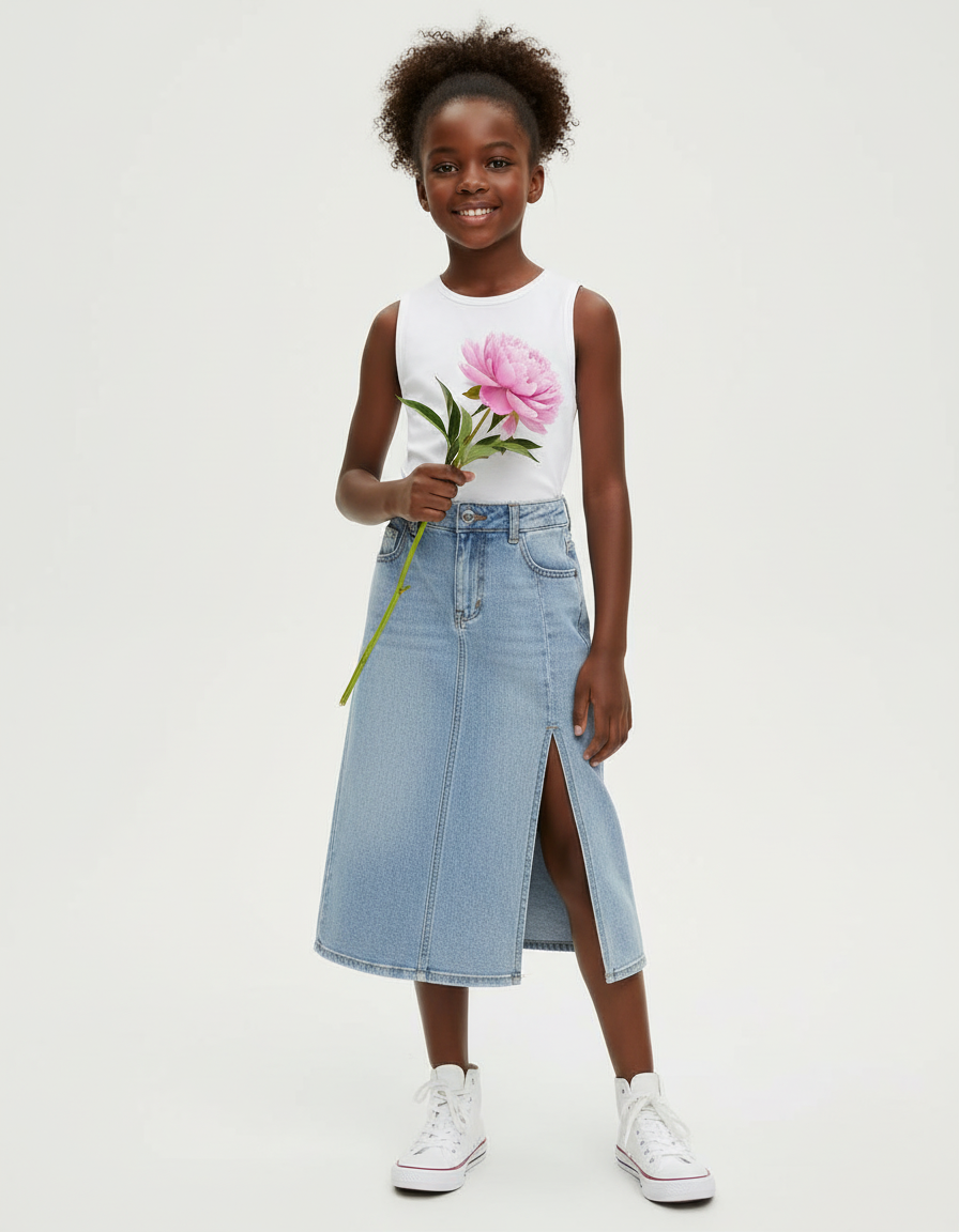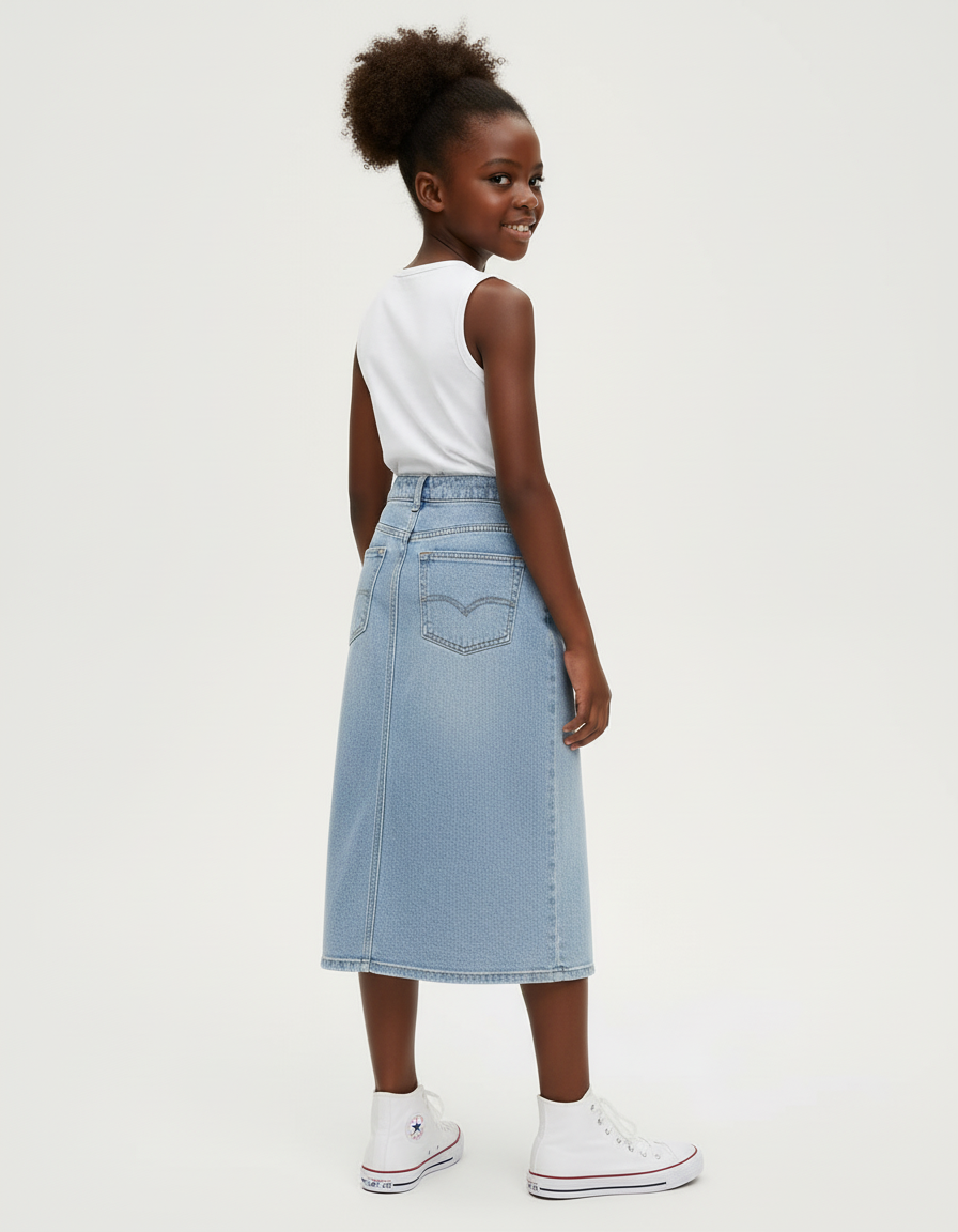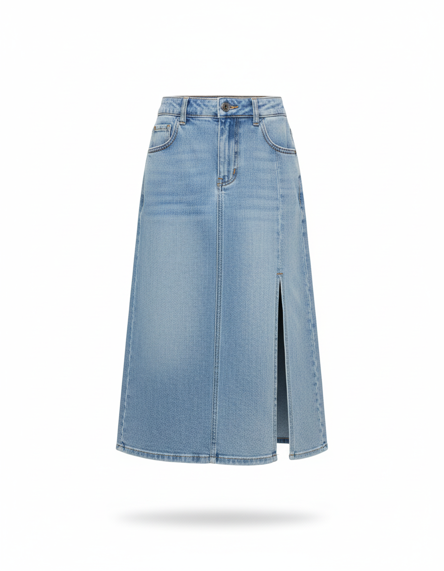 Jupe En Jean Longue Fente: Coupe Midi en Denim Clair