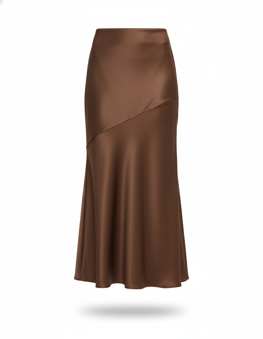 Jupe Godet Longue Marron Effet Satiné