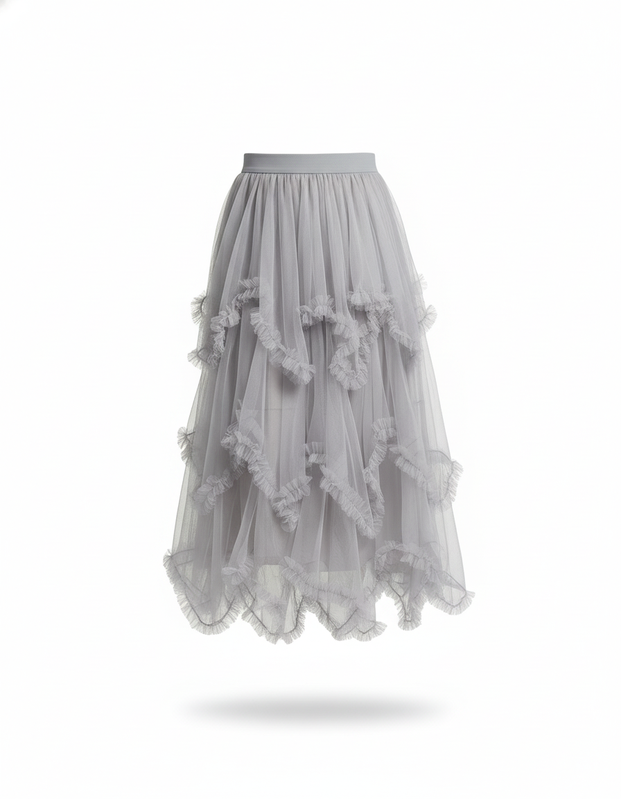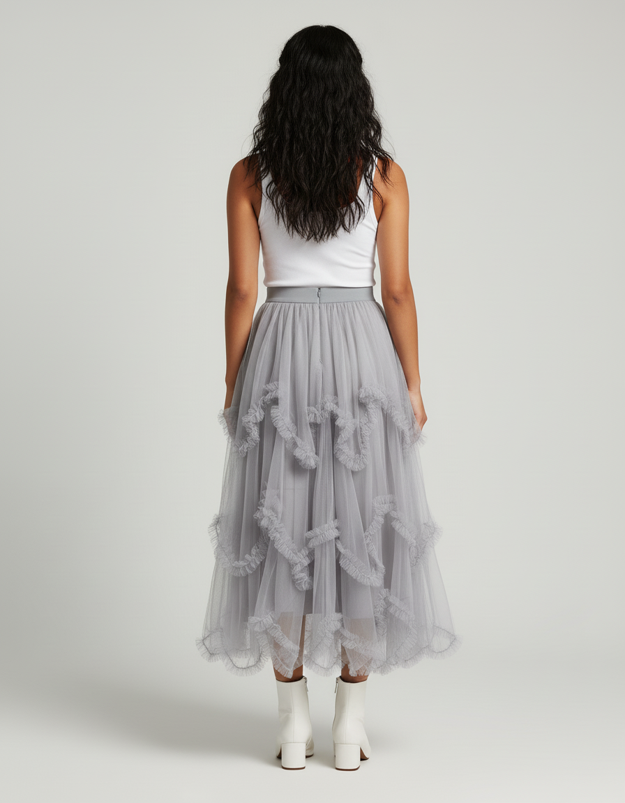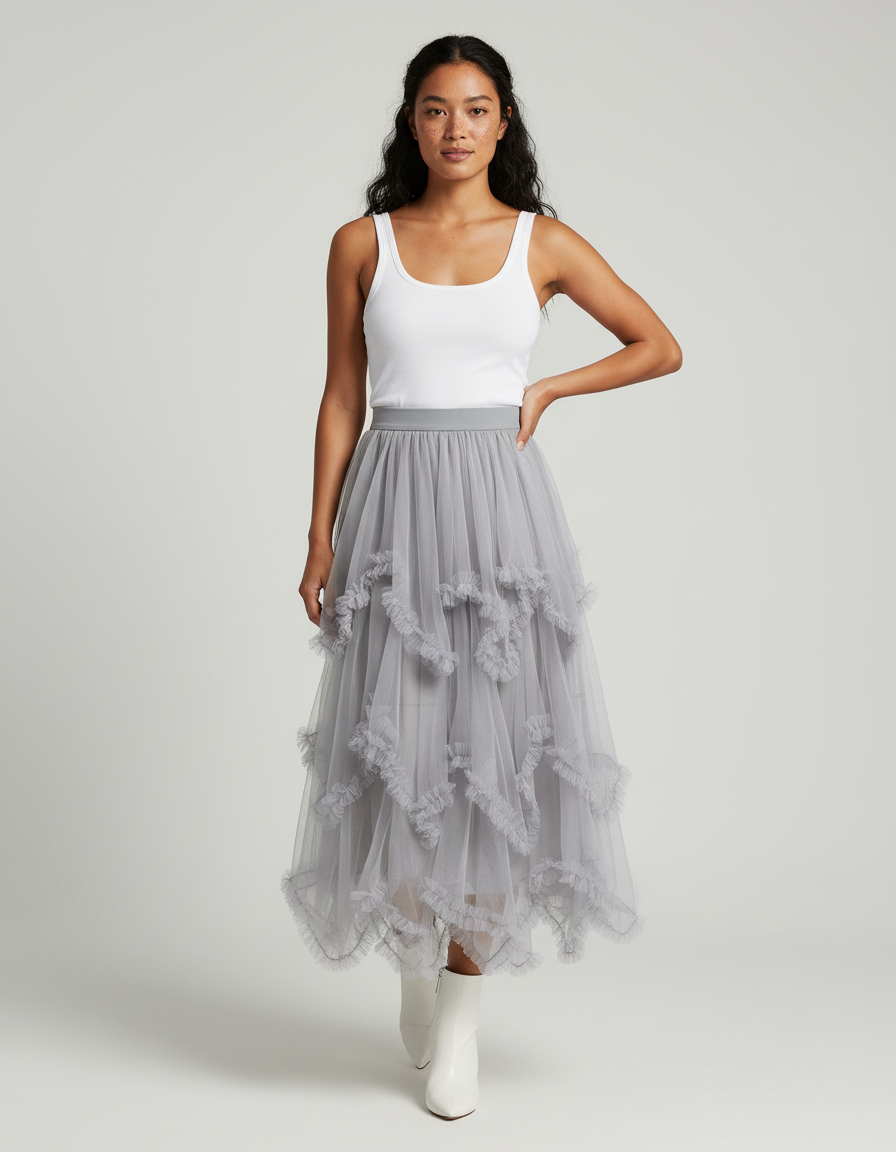 Jupe Grise Mi-Longue Volantée : L'Élégance Aérienne Réinventée