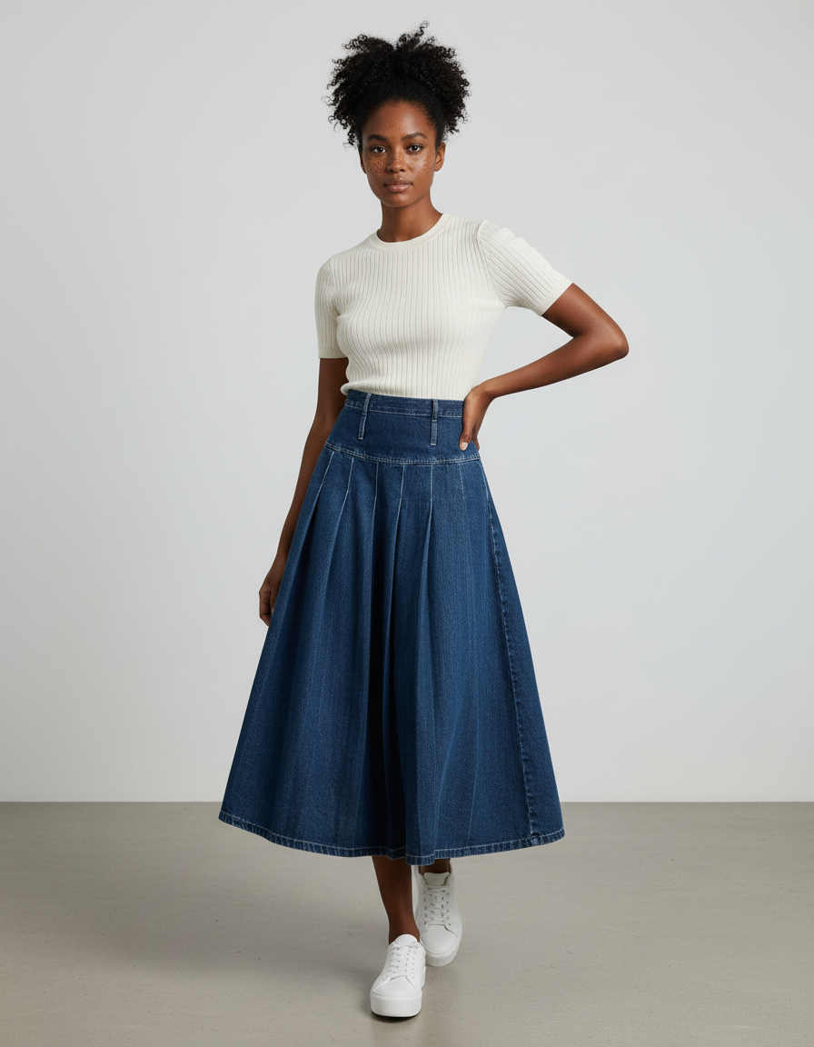 La Jupe Jean Plissée Longue : L'Élégance Décontractée Redéfinie