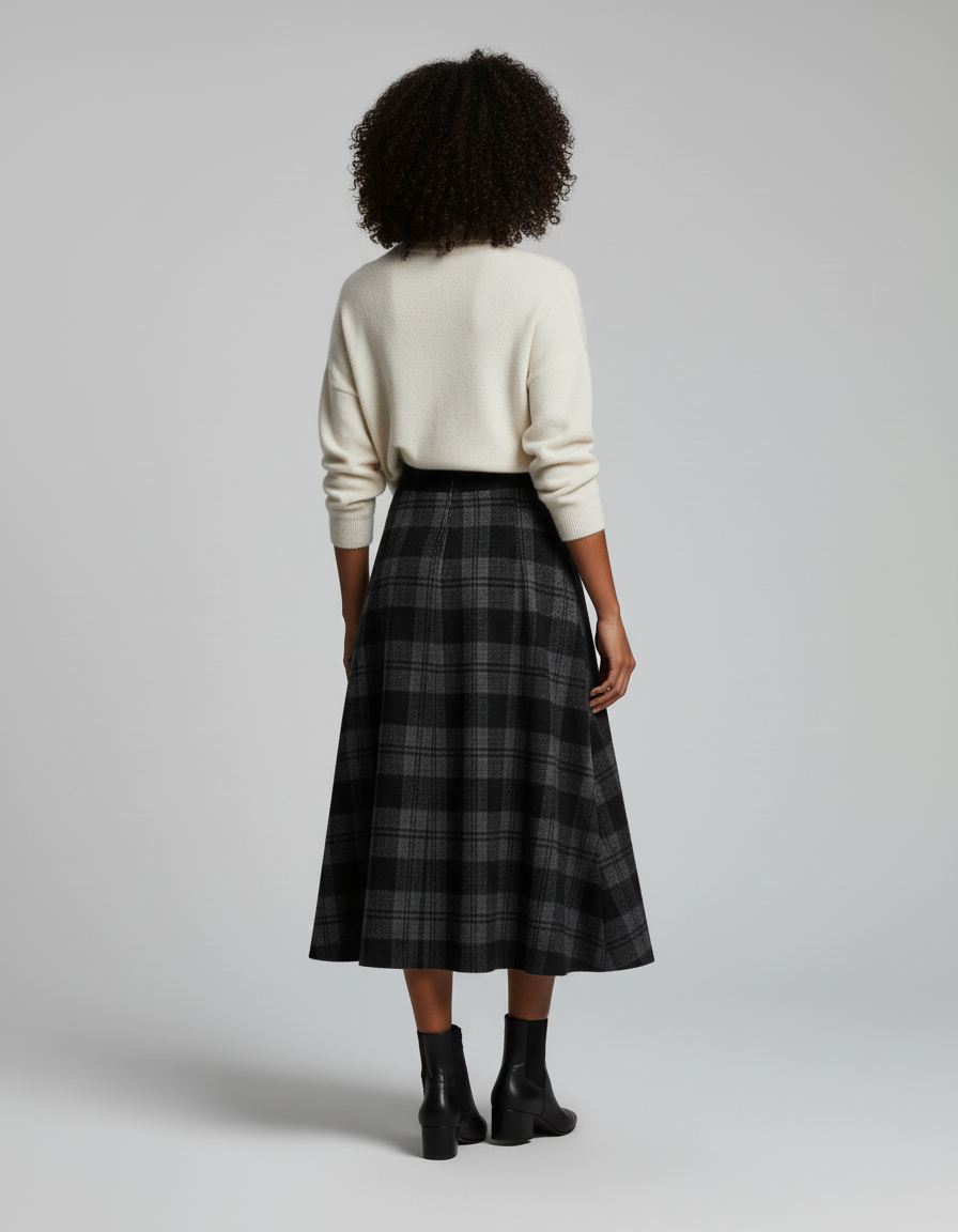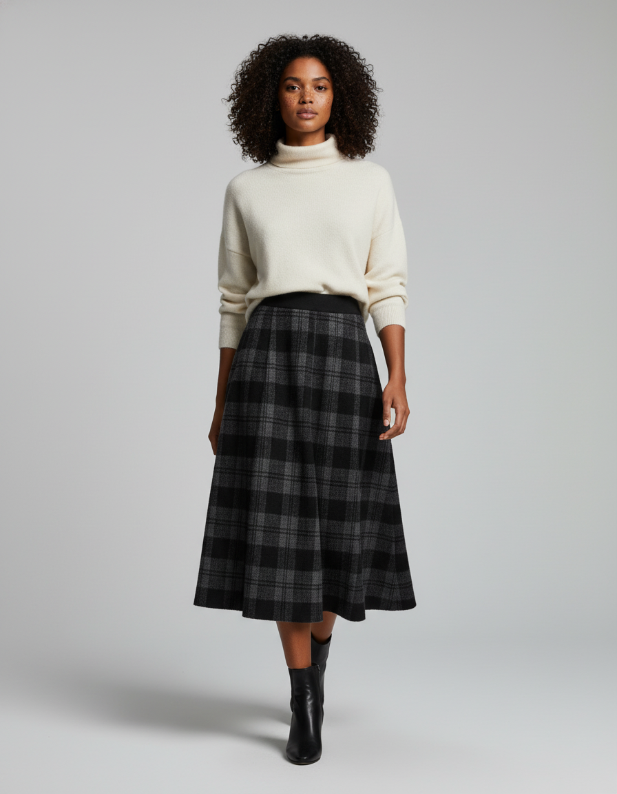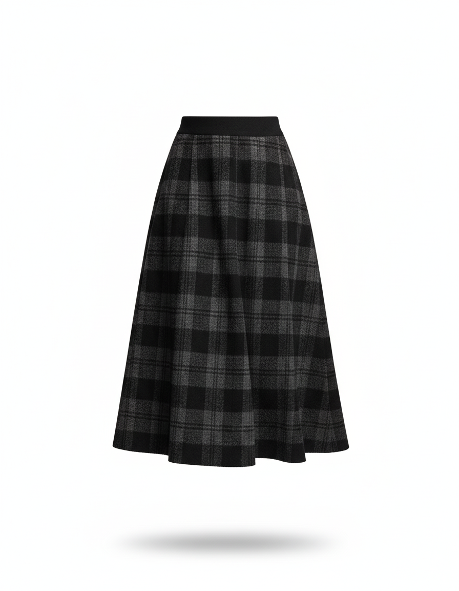 Jupe Longue À Carreaux Épaisse Élégante – Modèle Évasé