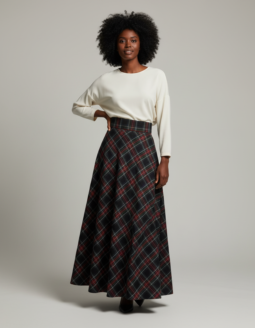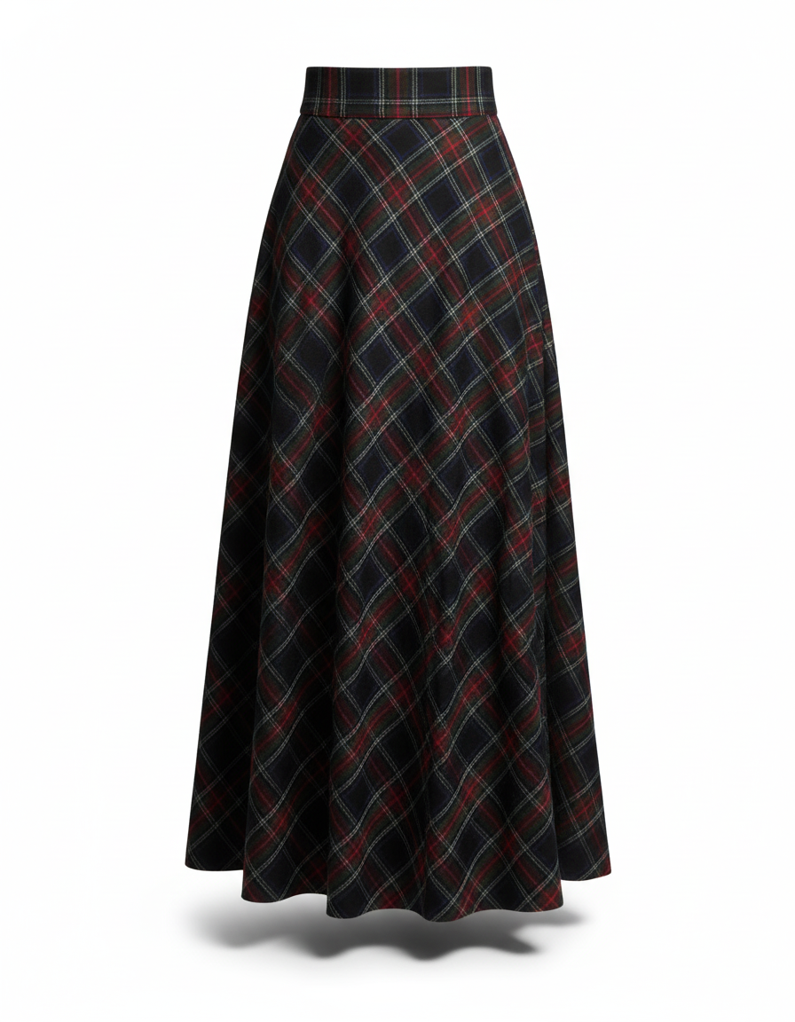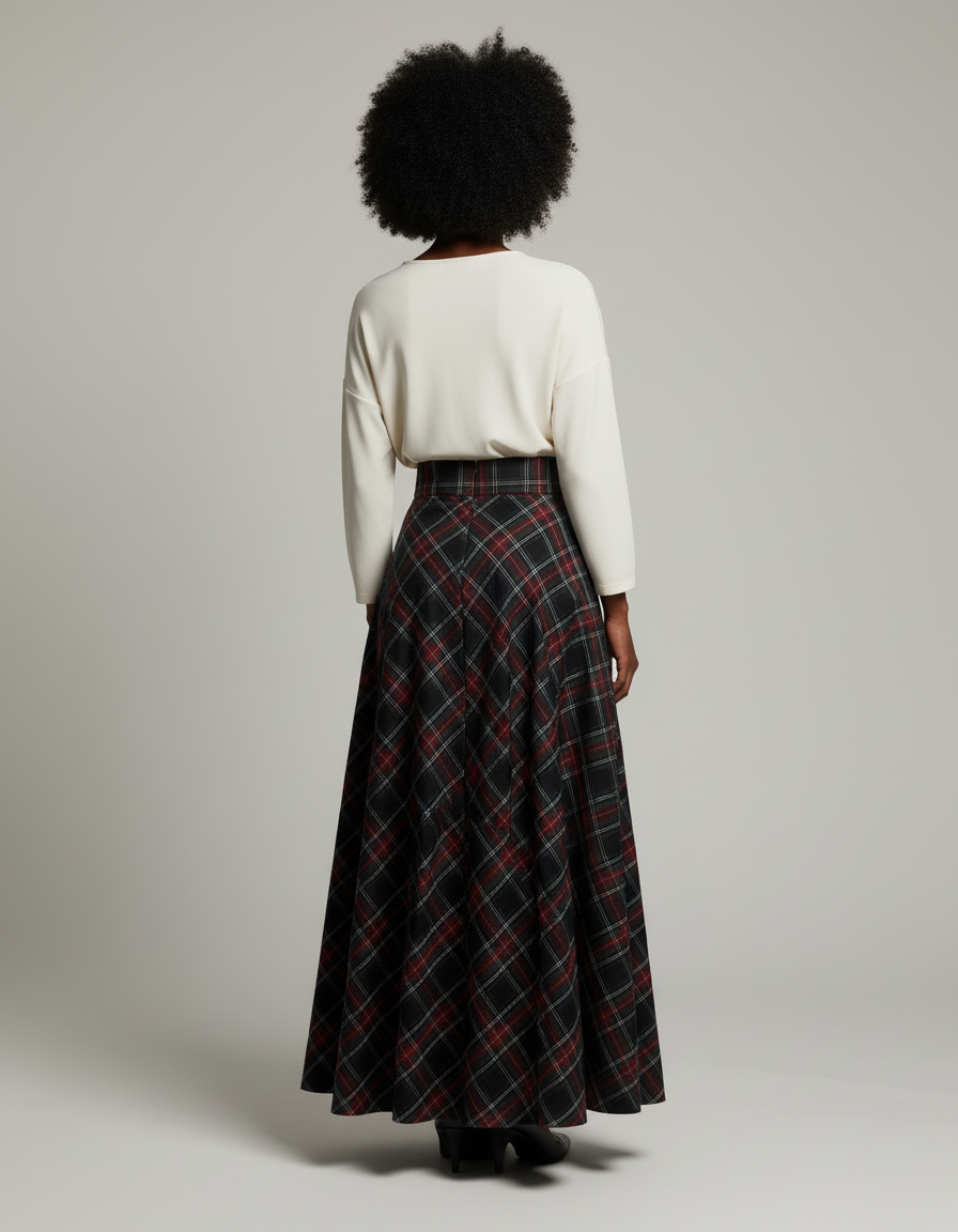 L'Élégance Hivernale Redéfinie : La Jupe Longue à Carreaux Rouge
