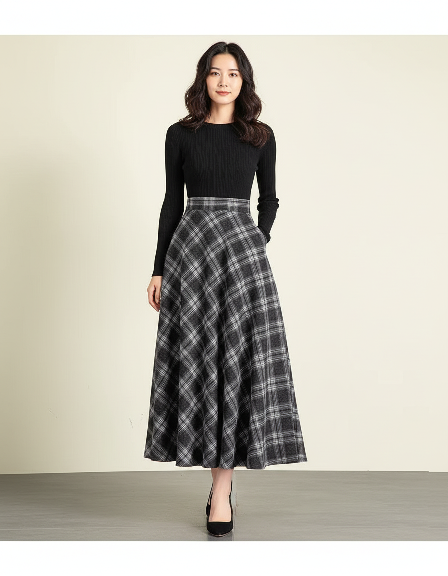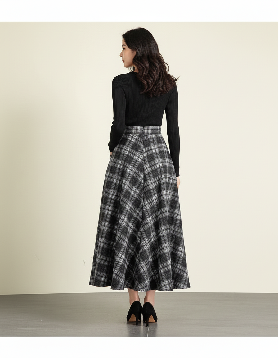 Découvrez notre Jupe Longue A-Line Carreaux Élégante, l'alliance parfaite du style classique et du confort moderne.