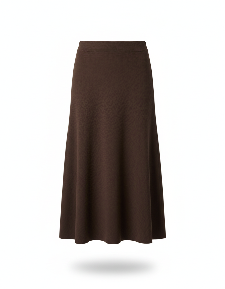 Ce qui distingue cette jupe, c'est sa conception en maille fluide haut de gamme, sélectionnée pour sa douceur exceptionnelle et son tombé impeccable. Oubliez les jupes rigides : notre modèle offre une souplesse et une tenue parfaites, créant un mouvement gracieux à chaque pas. Sa teinte marron riche et profonde, à la fois classique et contemporaine, se marie aisément avec une multitude de couleurs et de textures, faisant de cette jupe trapèze bien plus qu'un simple vêtement : un véritable atout pour une allure chic et affirmée, saison après saison. Un investissement dans votre style, une promesse de distinction.