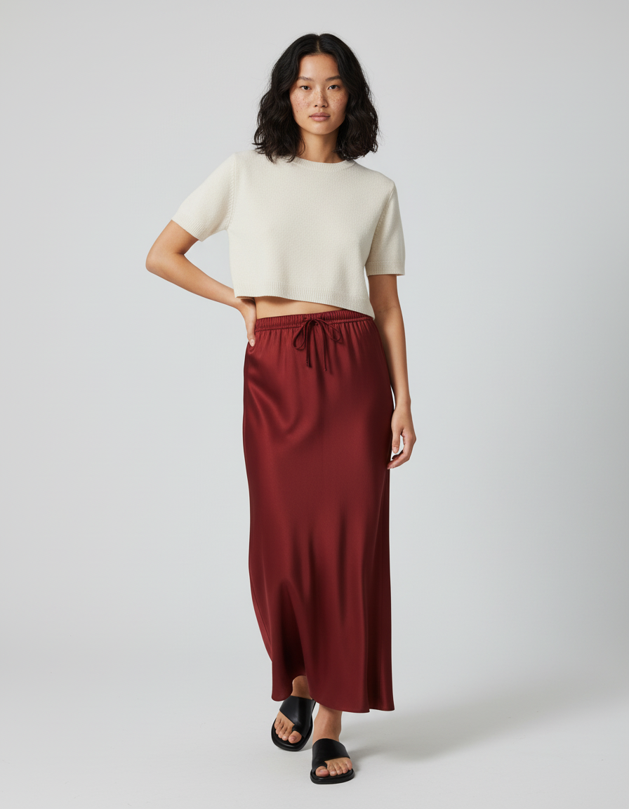 Ce qui distingue la Jupe Longue Acajou, c'est son mariage audacieux entre le confort absolu et un raffinement intemporel. Le satin haut de gamme, dans une teinte acajou profonde et captivante, offre un drapé magnifique qui sublime chaque mouvement. Sa coupe évasée flatte toutes les silhouettes, tandis que la taille élastique innovante élimine tout compromis sur le bien-être. C'est la pièce maîtresse qui transforme instantanément n'importe quelle tenue, ajoutant une touche de sophistication moderne et une confiance inébranlable.