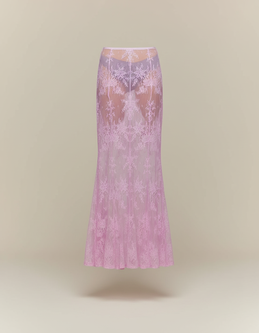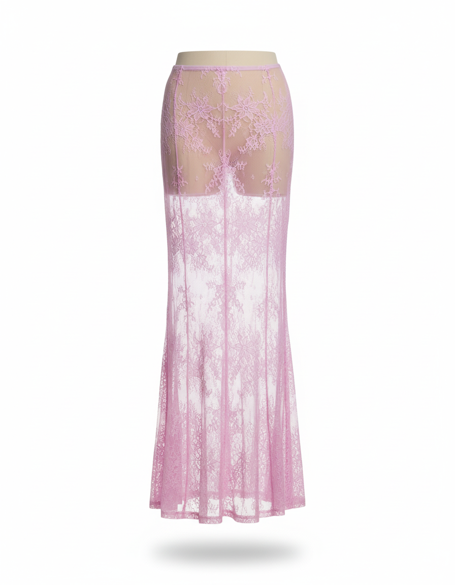 Jupe Longue Ajourée : L'Élégance Audacieuse en Dentelle Rose