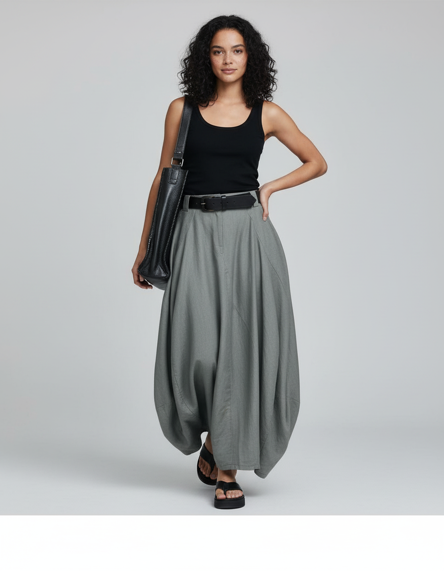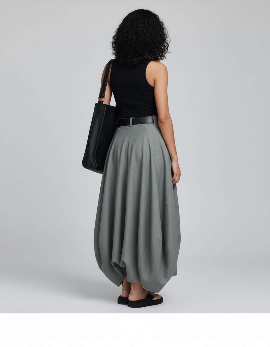 La Jupe Longue Ample Grise : L'Art du Mouvement et de l'Élégance
