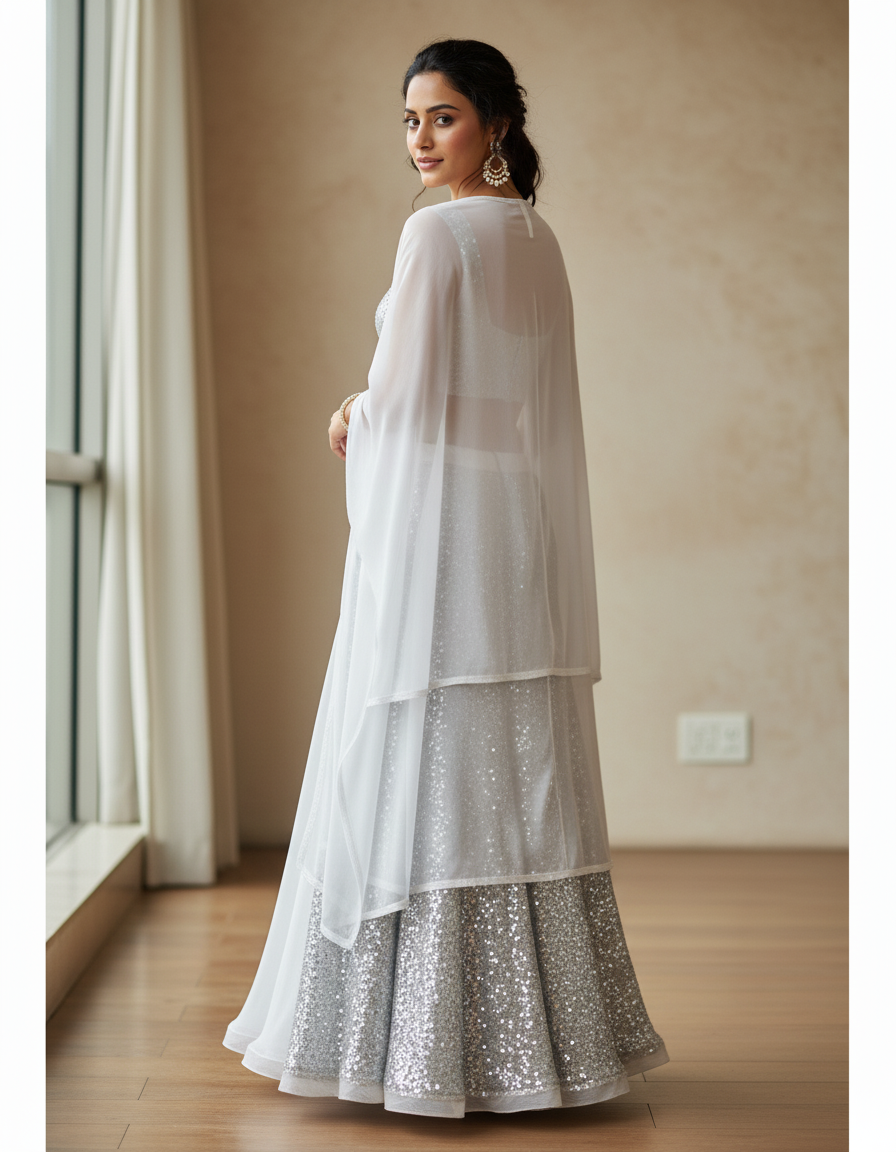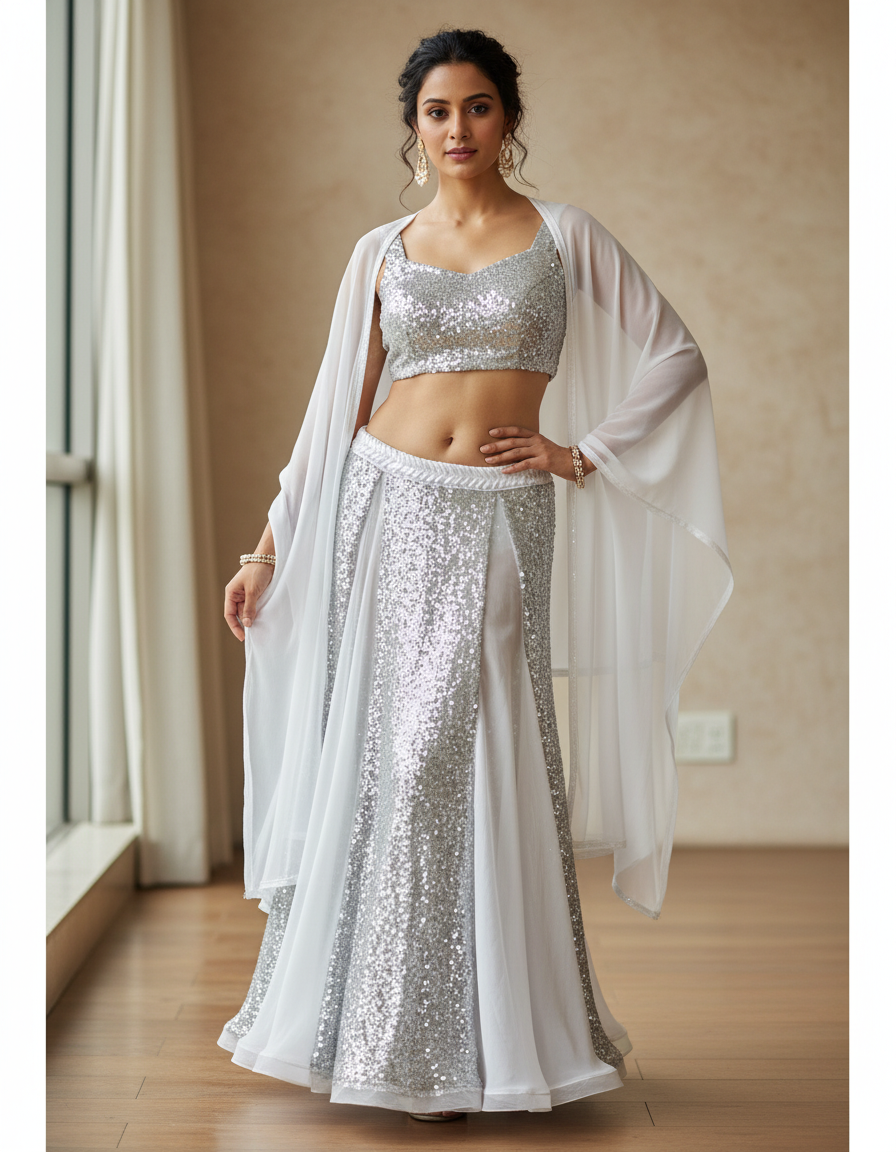 Au-delà de son esthétique éblouissante, cette jupe offre un confort exceptionnel et une liberté de mouvement totale, essentielle pour danser ou vous déplacer avec aisance. Portez-la avec un crop top pailleté assorti pour un look monochrome audacieux, ou optez pour un chemisier en soie uni afin de créer un contraste sophistiqué. Pour les accessoires, des boucles d'oreilles pendantes et des talons fins sublimeront l'ensemble. Avec la Jupe Longue Argentée Pailletée, vous ne faites pas que porter une tenue, vous incarnez l'élégance et la confiance, du premier pas jusqu'au dernier instant.
