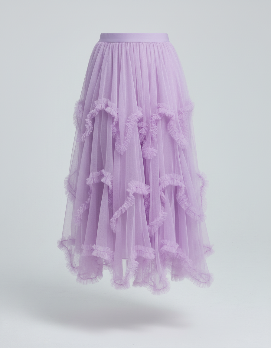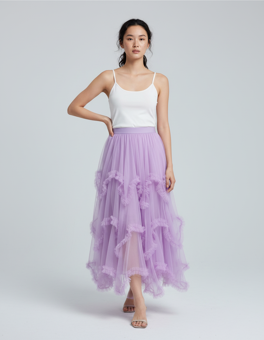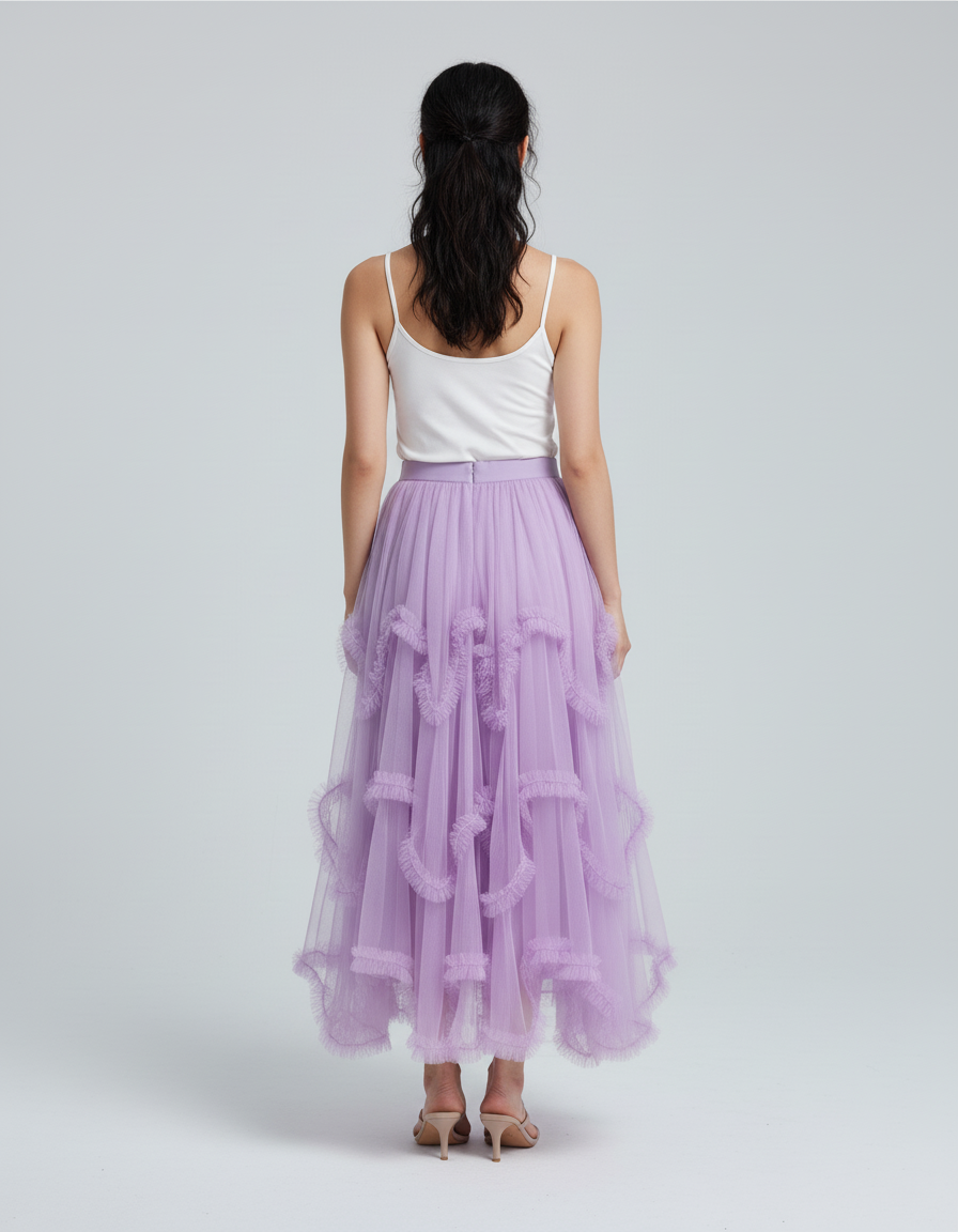 Jupe Longue Asymétrique : L'Élégance Audacieuse en Tulle Lavande