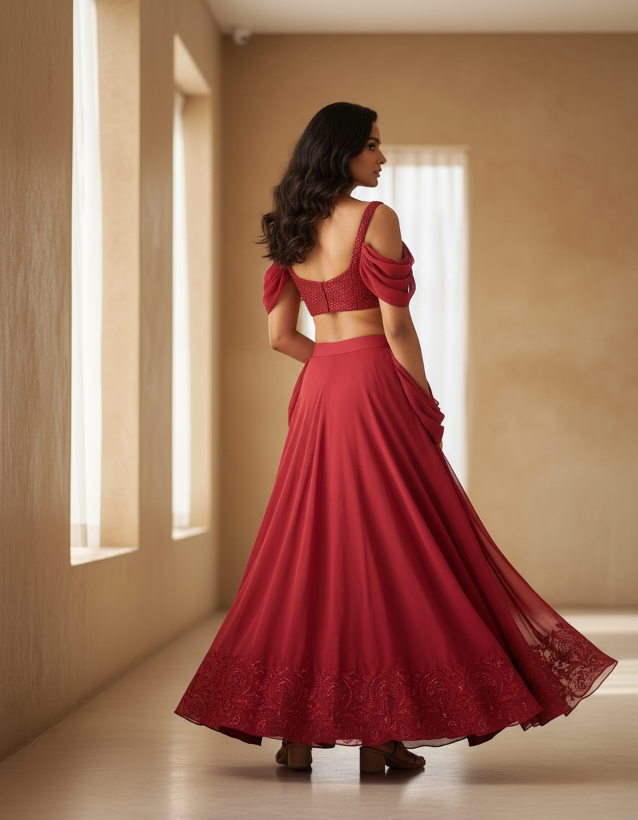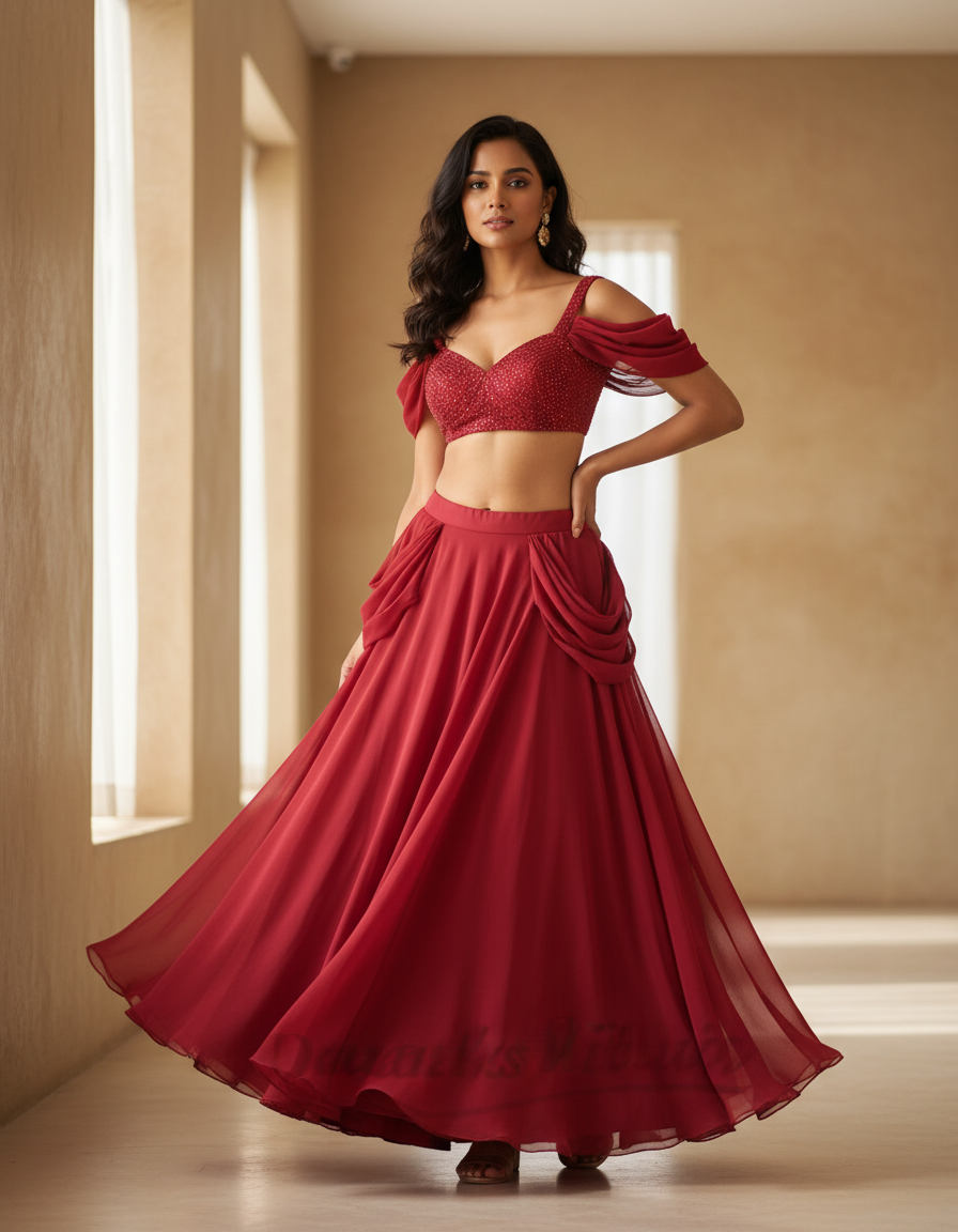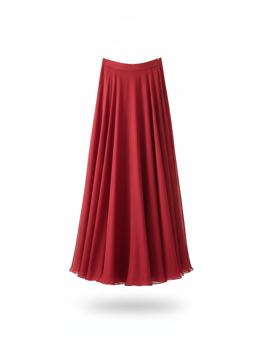 Ce qui distingue cette création, c'est sa mousseline d'une qualité supérieure, choisie pour sa légèreté exceptionnelle et sa capacité à sublimer le bordeaux profond en reflétant la lumière. Loin des volants traditionnels, ses drapés subtilement structurés au niveau de la taille ajoutent une dimension architecturale et une touche d'originalité, garantissant que votre look soit à la fois classique et résolument contemporain. Portez-la avec un crop top ajusté pour une silhouette audacieuse ou un chemisier délicat pour une élégance plus discrète. C'est la pièce essentielle d'une garde-robe haut de gamme, conçue pour celles qui ne se contentent jamais de l'ordinaire.