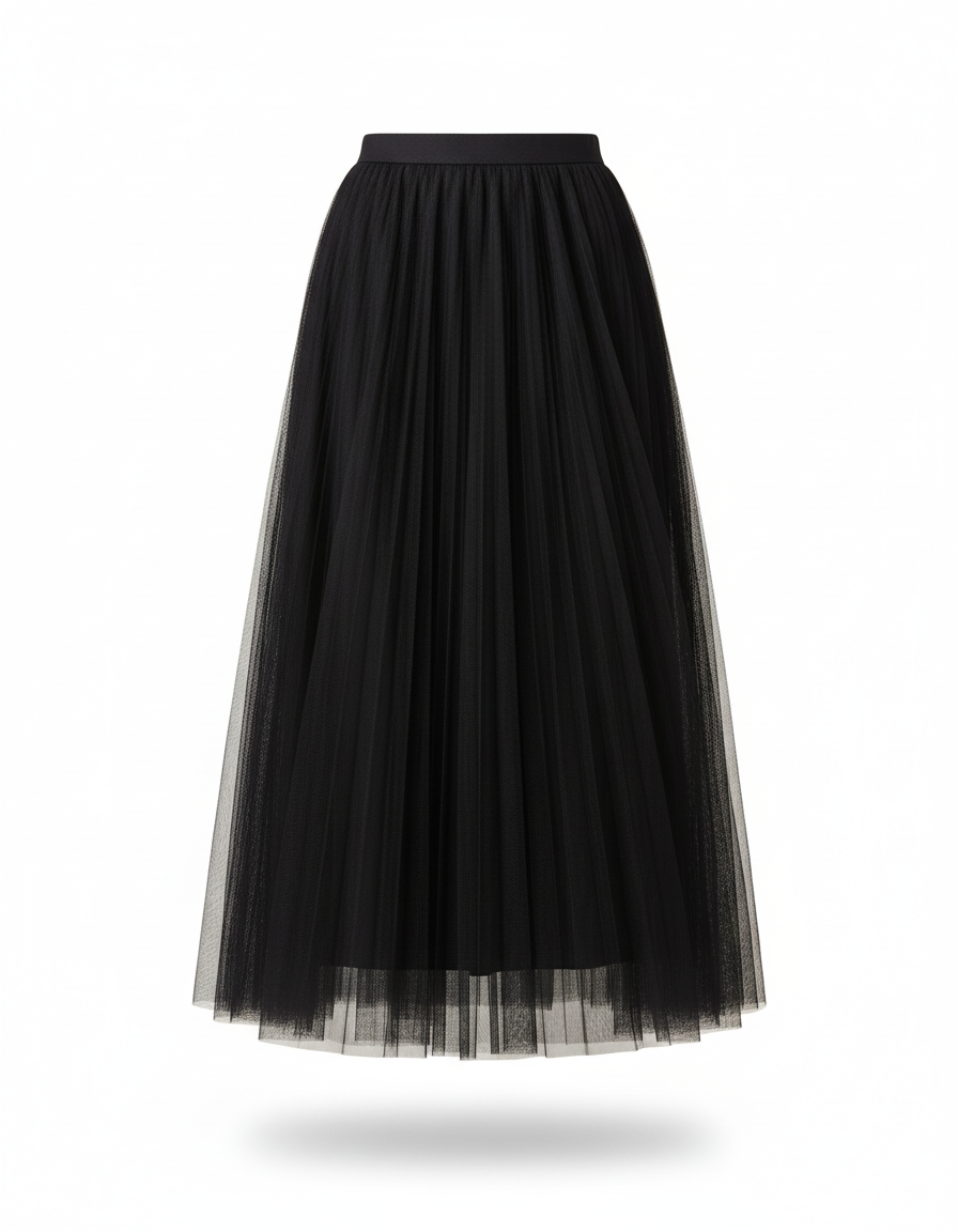 La Jupe Longue Avec Voile Transparent est une pièce maîtresse de votre garde-robe, conçue pour transformer chaque occasion en un moment d'élégance. Sa silhouette ample en tulle noir, délicatement bouffante, apporte une touche de sophistication aérienne à chaque tenue. Idéale pour les soirées élégantes, mariez-la avec un top en soie et des talons fins pour une allure glamour inoubliable. Pour une approche plus contemporaine et audacieuse, osez la décaler avec un pull en maille fine comme celui porté par notre modèle, ou un blazer structuré et des bottines. Elle se prête également à des événements plus décontractés chic, associée à un simple t-shirt blanc et des baskets pour un contraste saisissant et tendance.