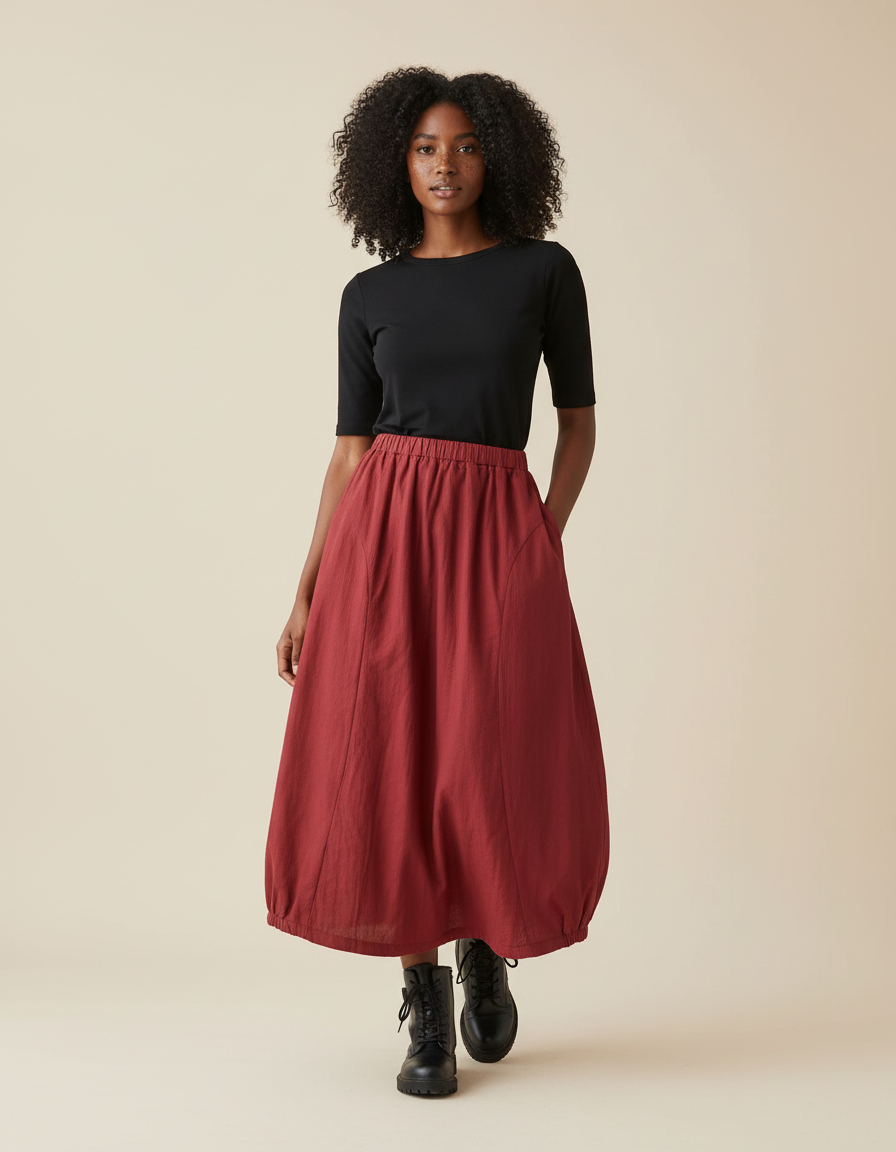 Découvrez notre jupe longue ballon, parfaite pour allier style et confort au quotidien.
