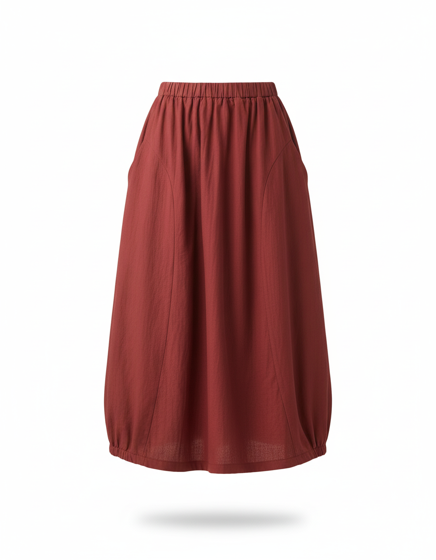 Découvrez la Jupe Longue Ballon, une pièce maîtresse qui allie confort absolu et audace stylistique. Confectionnée en coton de première qualité dans une teinte terracotta riche et chaleureuse, elle est l'incarnation d'une élégance décontractée. Sa taille élastique assure un ajustement parfait et une liberté de mouvement inégalée, tandis que sa coupe bouffante distincte crée une silhouette moderne et sophistiquée. Idéale pour la femme qui valorise le bien-être sans compromettre son allure, cette jupe s'adapte à toutes les occasions, du brunch élégant à la soirée culturelle.