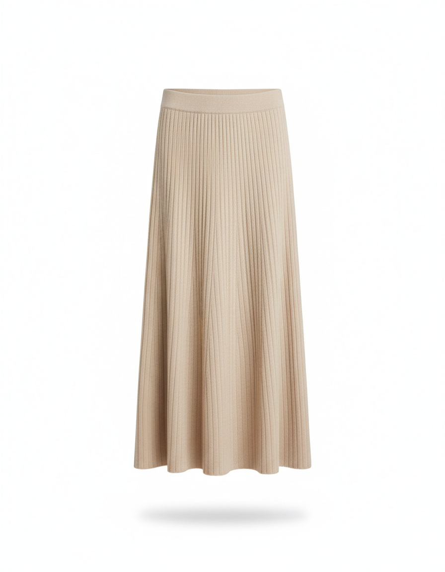 L'Élégance Côtelée au Quotidien : La Jupe Longue Beige Indispensable