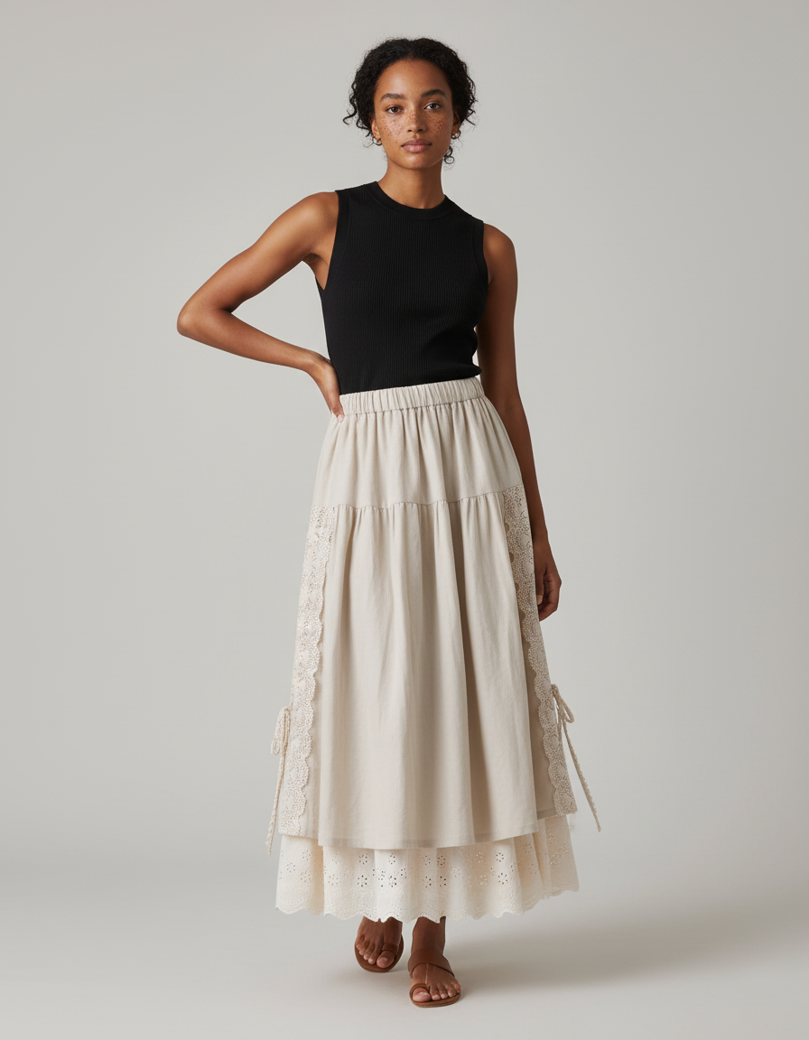 Jupe Longue Beige Dentelle Bohème : L'Élégance Décontractée Réinventée