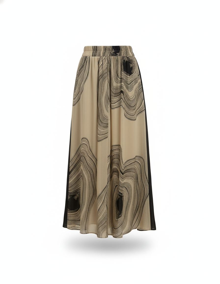 Caractéristiques de la Jupe Longue Beige Motifs Abstraits Élégante