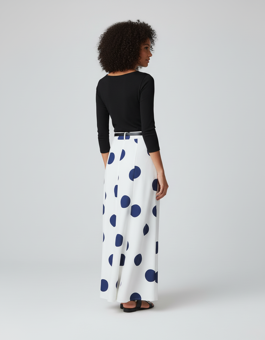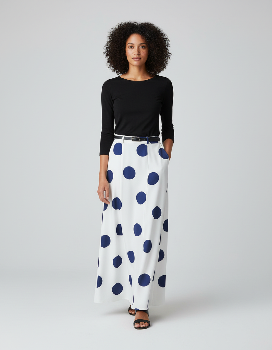 Pourquoi choisir la Jupe Longue Blanche À Pois Fluide