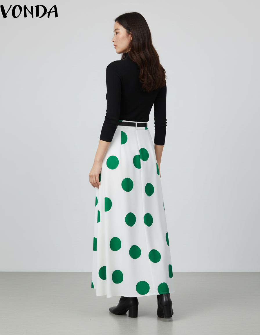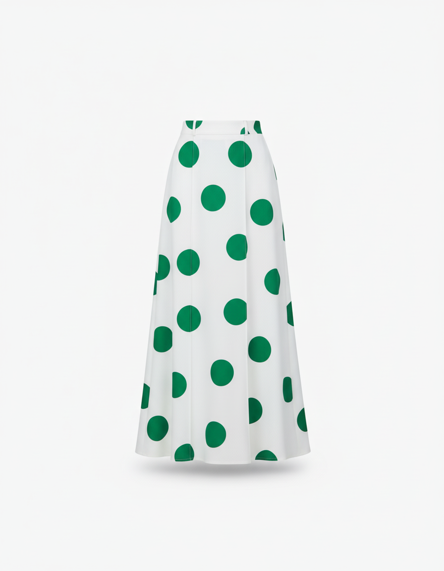 L'Élégance Distinctive de la Jupe Longue Blanche À Pois Verts Bohème