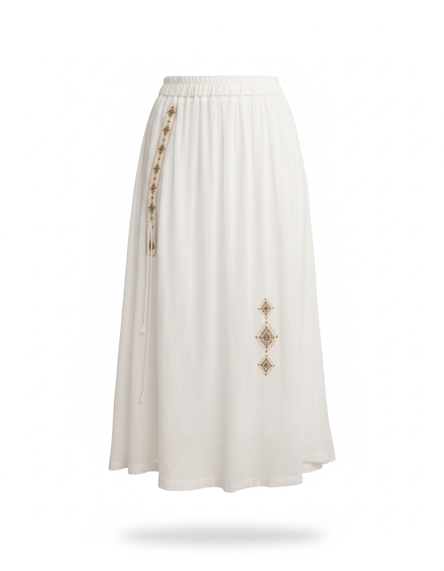 Jupe Longue Blanche Broderie Bohème : Présentation