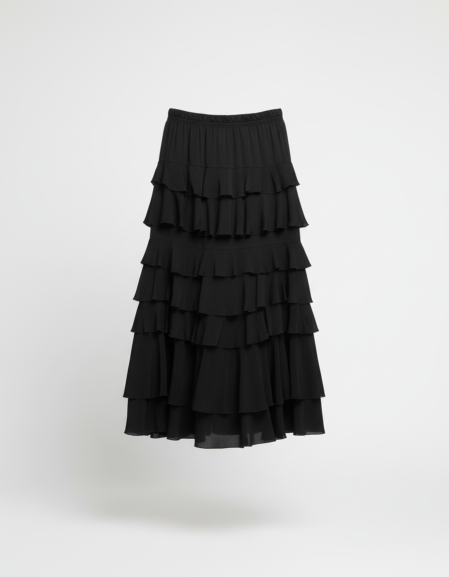 Ce qui distingue cette jupe à volants, c'est son équilibre parfait entre volume et finesse. Chaque niveau de volants est pensé pour créer une silhouette aérienne sans ajouter de lourdeur, tandis que le coton doux au toucher promet un confort absolu tout au long de la journée. C'est plus qu'une jupe : c'est une invitation à embrasser la douceur de vivre avec une touche de raffinement discret, une pièce maîtresse qui transcende les saisons et les tendances éphémères, vous assurant une allure impeccable sans effort.