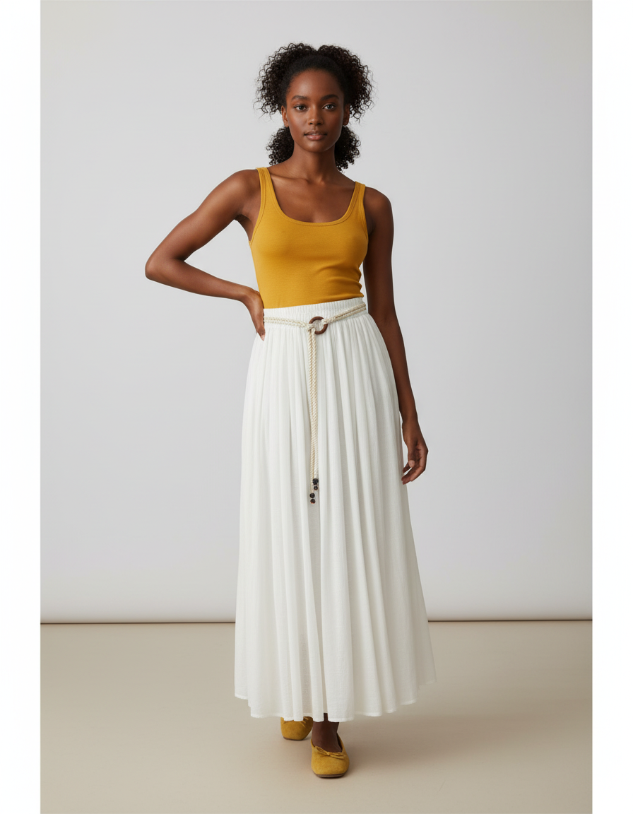 Votre Jupe Longue Plissée Blanche : L'Élégance Décontractée