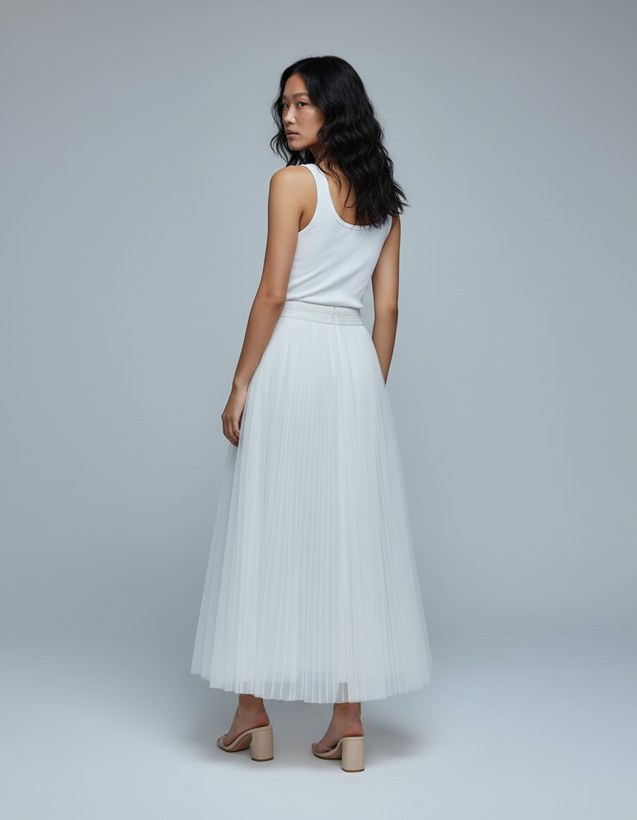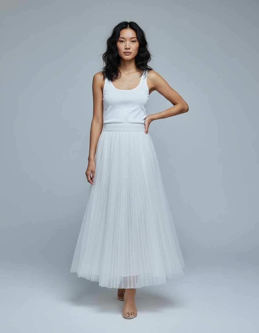 Jupe Plissée en Tulle Fluide – L'Élégance Lumineuse