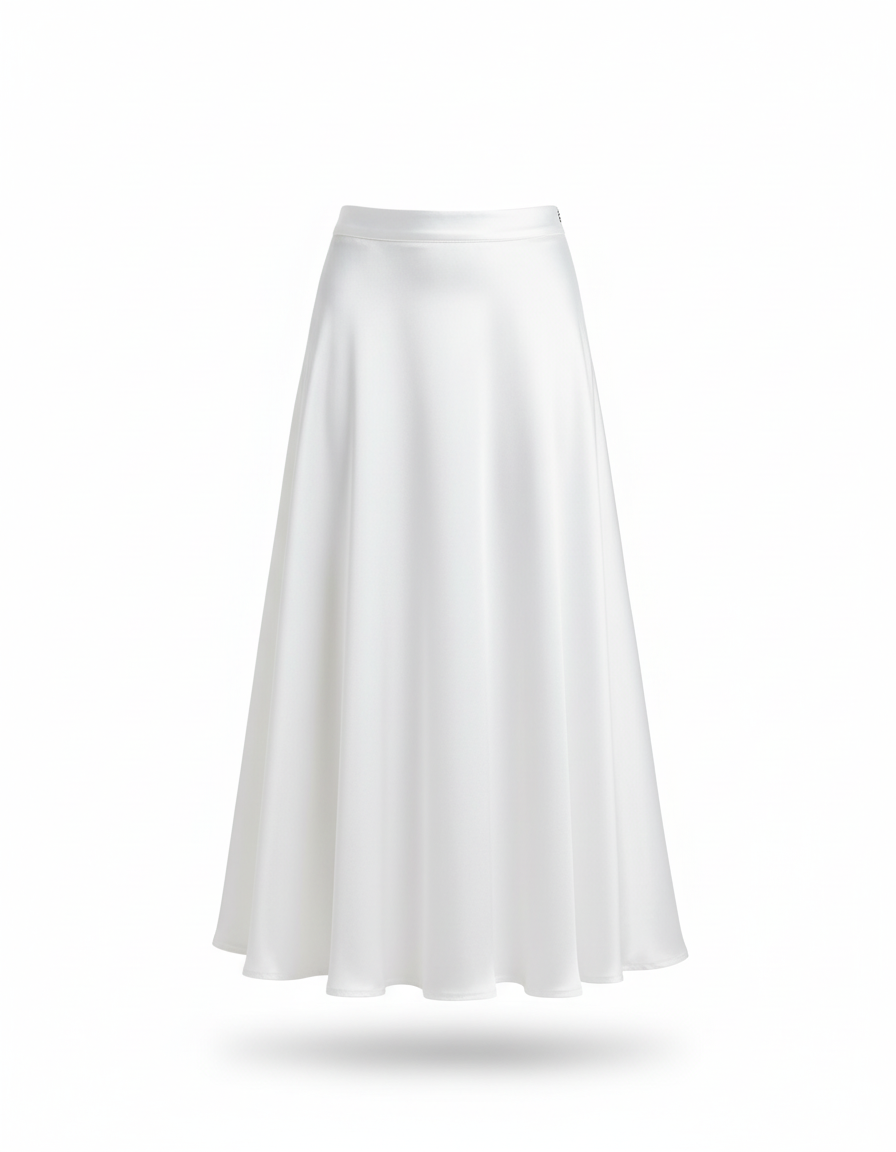 Caractéristiques de la Jupe Longue Blanche Satin Fluide
