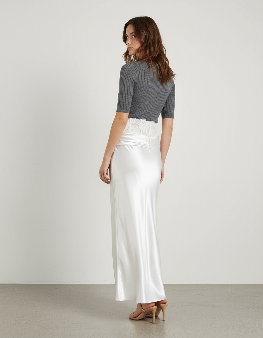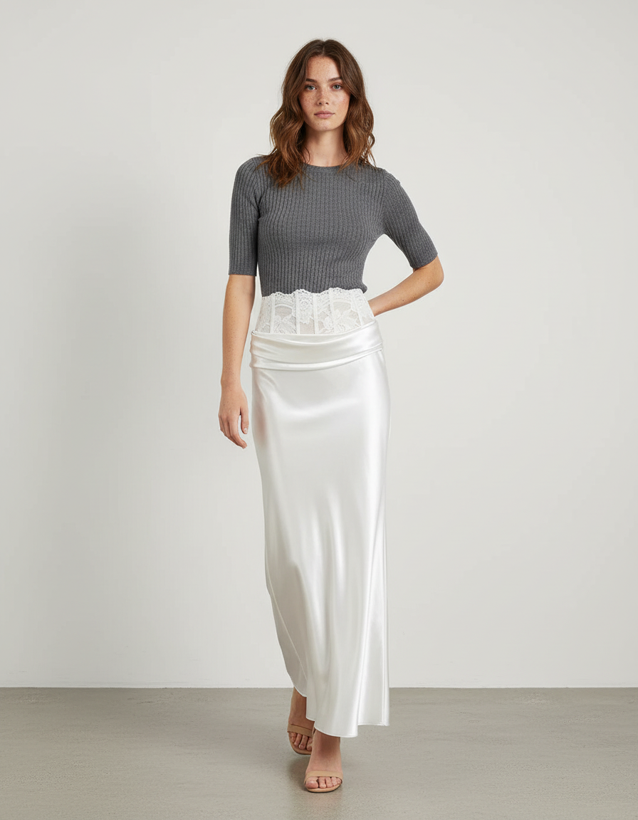 Jupe Longue Blanche Satinée Dentelle Élégante : L'Essence du Chic Moderne