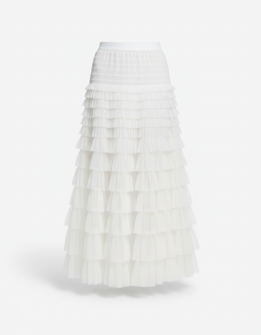 Jupe Longue 'Céleste' en Tulle Volants : L'Élégance Redéfinie