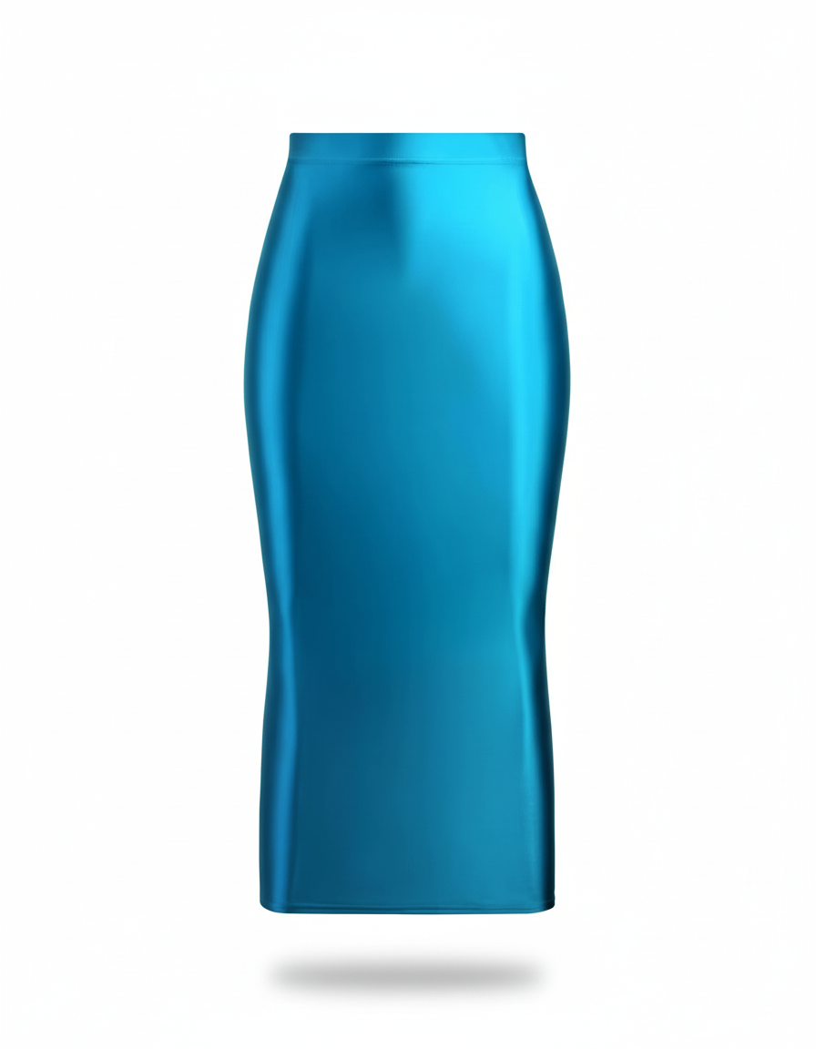 Jupe Tube Satinée : L'Éclat Audacieux du Bleu Moderne