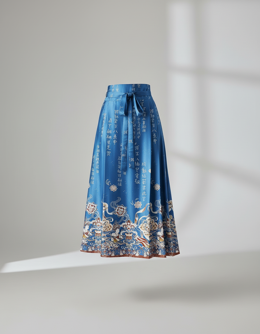 Ce qui distingue véritablement la Jupe Longue Bleu et Blanche, c'est son motif exclusif. Chaque détail, des caractères calligraphiques aux ornements délicats, raconte une histoire, faisant de cette jupe une œuvre d'art portable. Le satin luxueux caresse la peau, tandis que la palette de couleurs vives sur fond bleu profond assure un impact visuel captivant. Que ce soit pour une réunion importante, un événement spécial ou simplement pour rehausser votre quotidien, elle vous garantit une allure distinctive et mémorable. Affirmez votre style avec une pièce qui célèbre l'héritage culturel et la mode contemporaine.