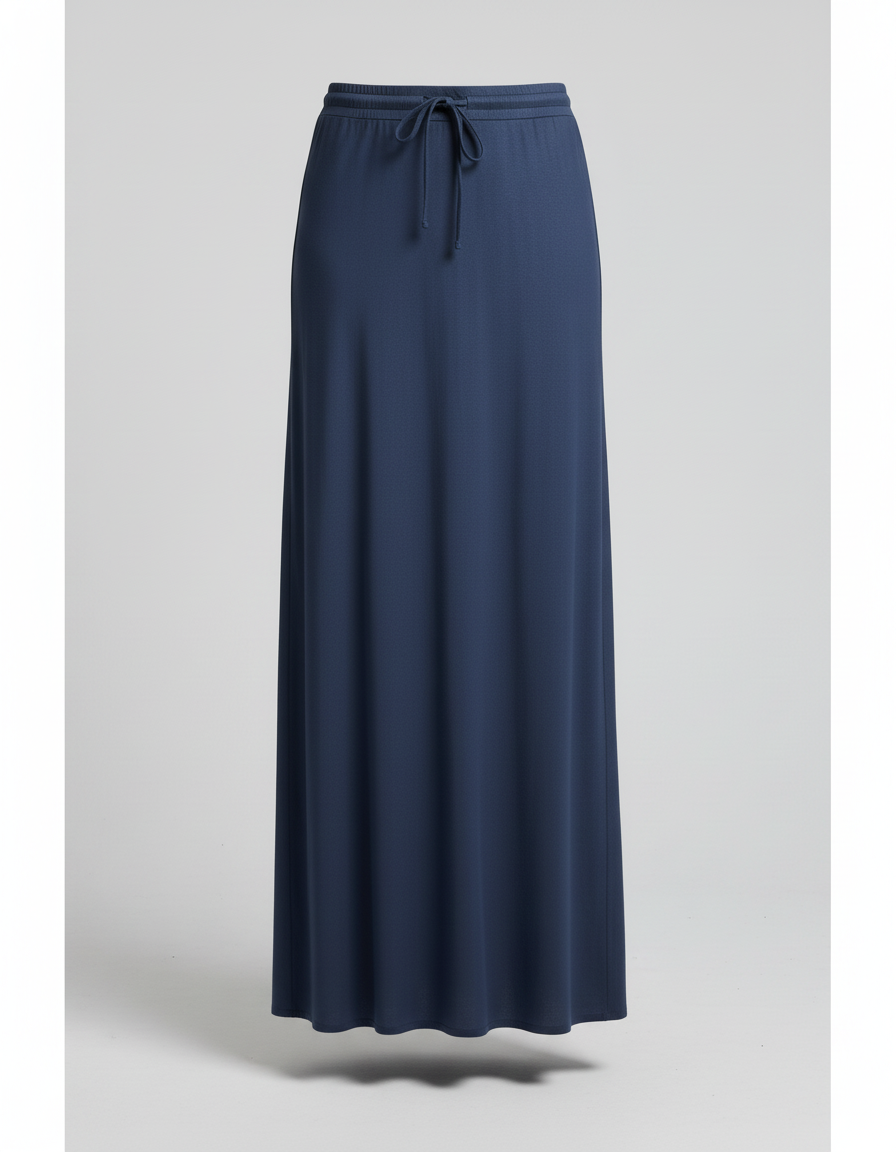 Découvrez le confort et l'élégance intemporelle de notre jupe longue bleu foncé, parfaite pour toutes les saisons.