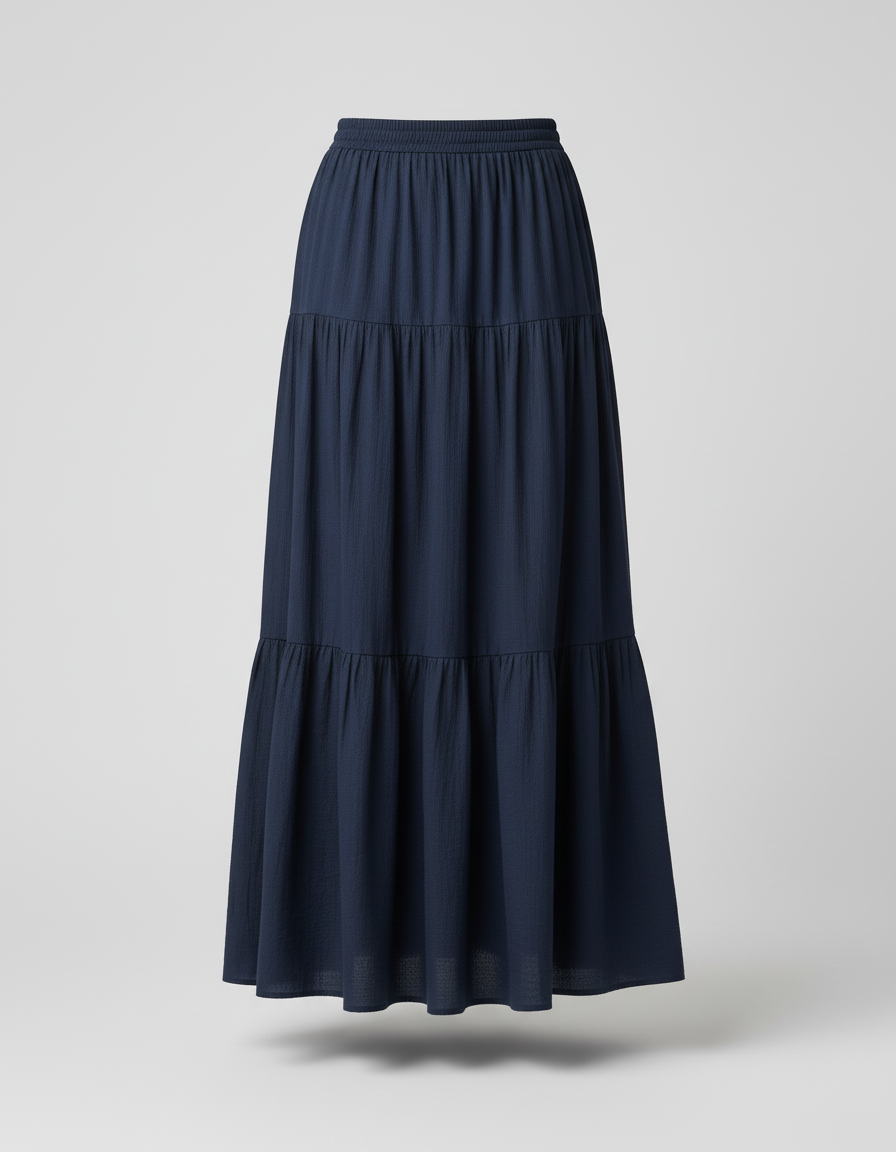 Découvrez l'élégance et le raffinement avec notre Jupe Longue Bleu Marine À Volants Fluide. Parfaite pour toutes les occasions, elle allie confort et style pour sublimer votre silhouette en toute simplicité.