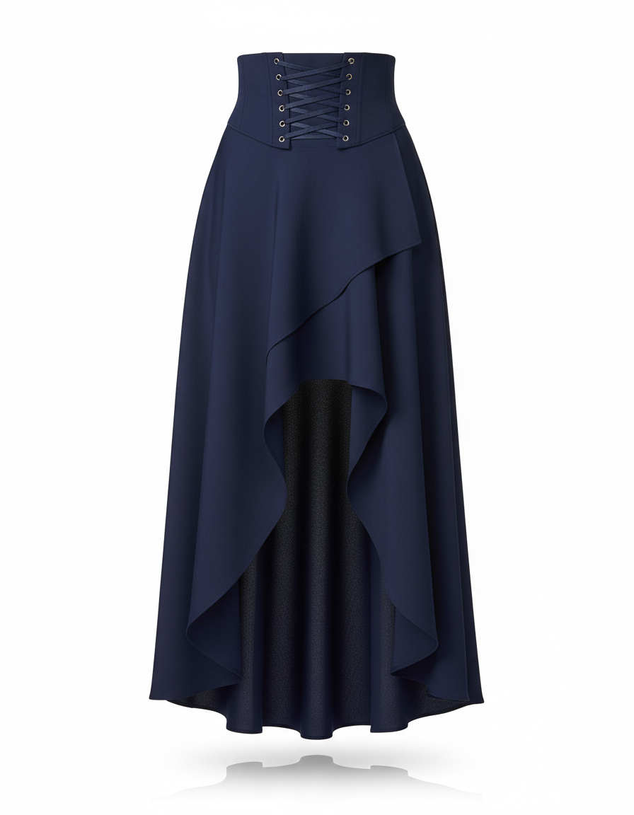 Caractéristiques de la Jupe Longue Bleu Marine Asymétrique Chic
