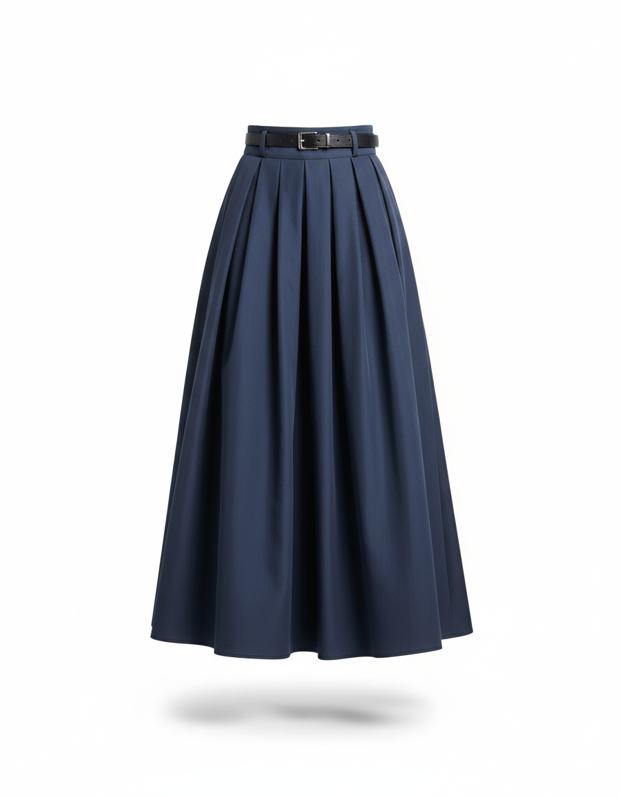 Jupe Longue Bleu Marine Plissée Chic : L'Élégance Redéfinie