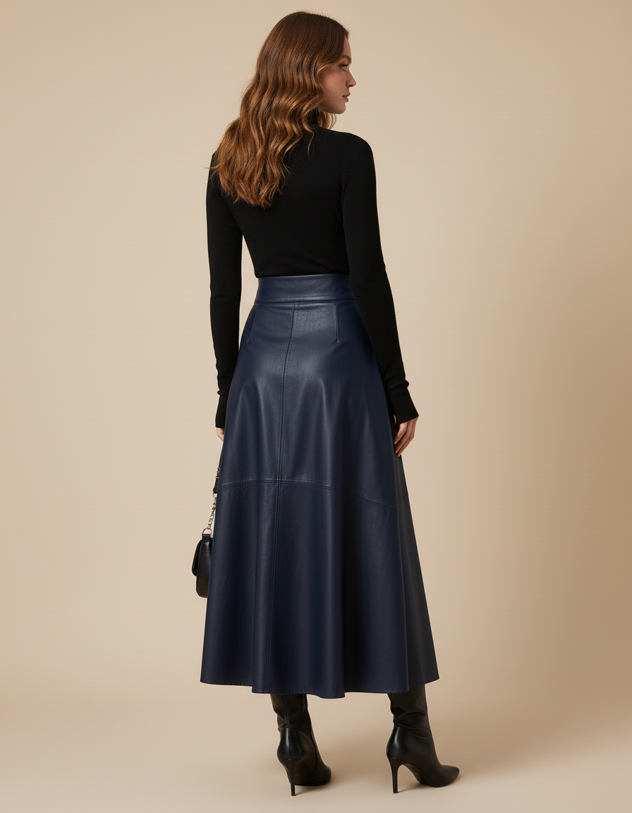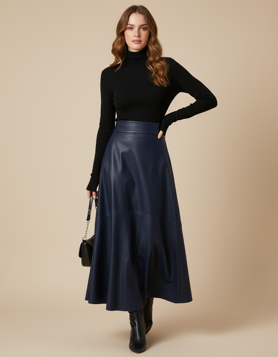 Jupe Longue Bleu Marine Similicuir Élégante : L'Élégance Fluide Redéfinie