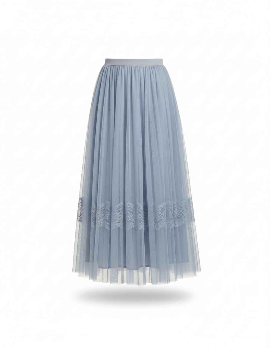 Caractéristiques de la Jupe Longue Bleu Poudré Tulle Fluide