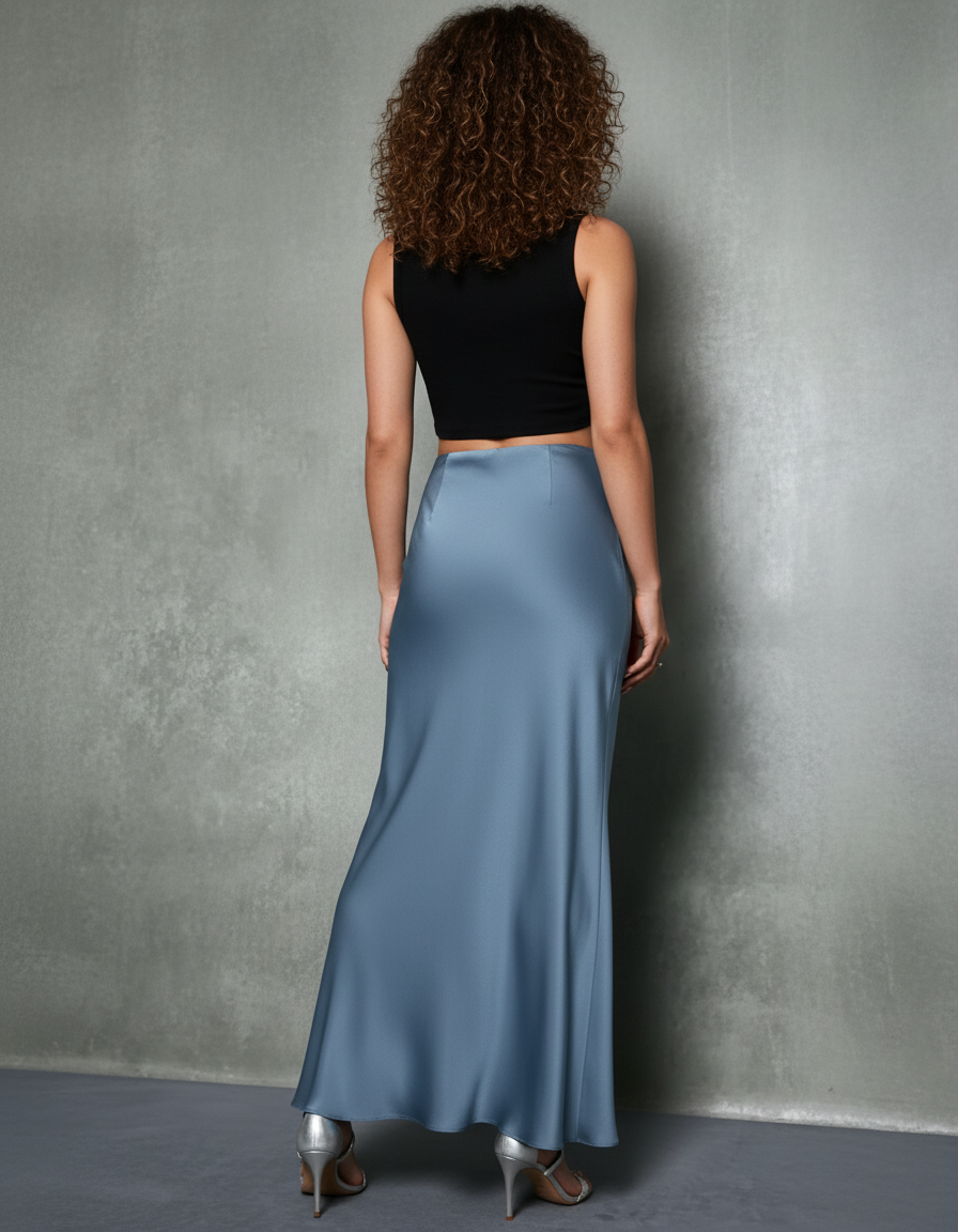 Élégance Sans Effort : La Jupe Longue Bleu Satinée, Votre Atout Maître
