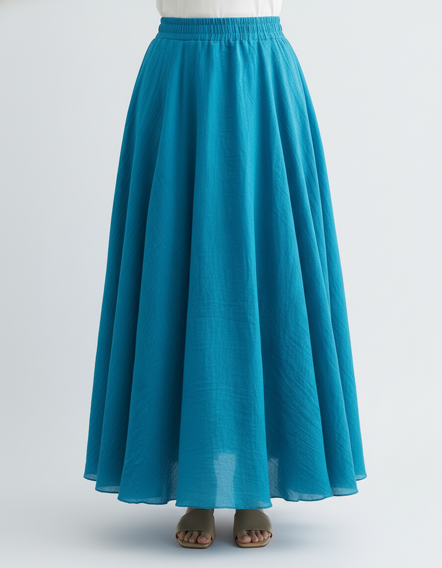 Conçue dans une mousseline délicate et aérienne, notre Jupe Longue Bleu Turquoise Fluide Bohème est une ode à la légèreté. Sa coupe évasée impeccable assure une liberté de mouvement absolue, permettant à chaque pas de devenir une danse fluide. Le tombé naturel de cette pièce haut de gamme flatte toutes les silhouettes, offrant un confort inégalé et une sensation de fraîcheur qui dure du matin au soir, sans jamais entraver votre allure sophistiquée.